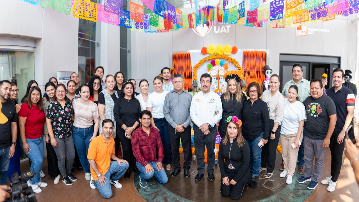 Durante la instalación del altar en el Centro de Gestión del Conocimiento, organizado por Familia UAT, el rector se unió a la comunidad universitaria en un acto simbólico que reflejó el sentido de unidad y respeto hacia los seres queridos que han partido.