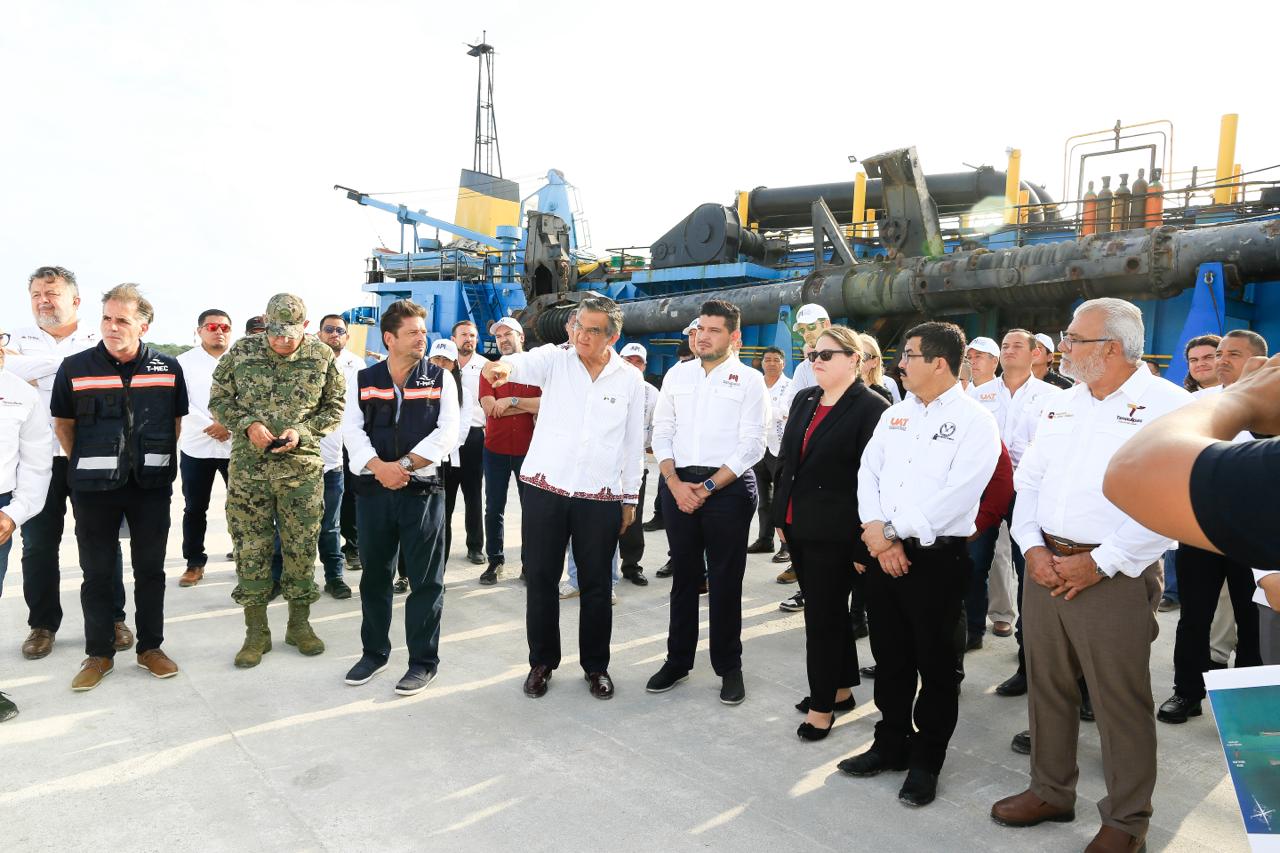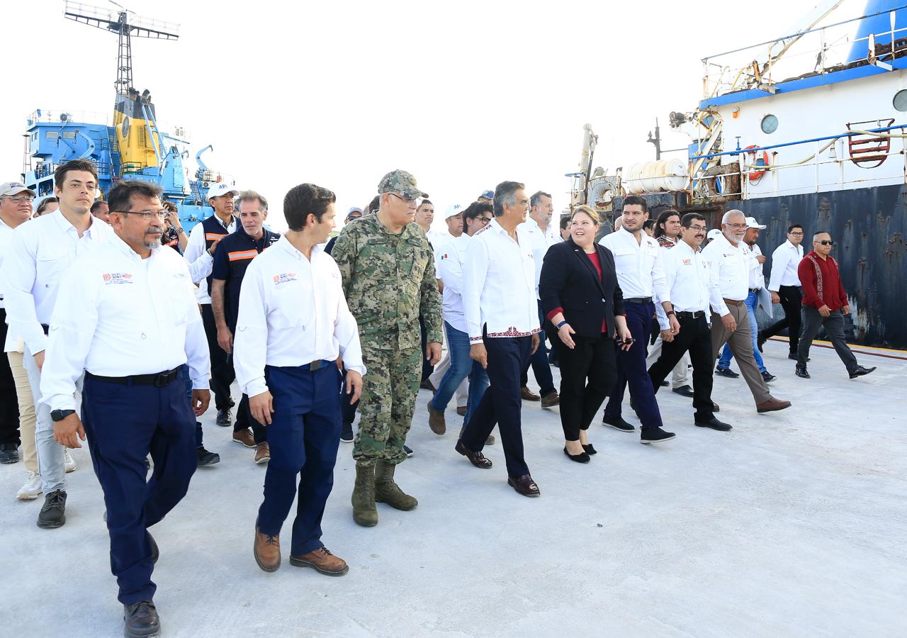 Por su parte, Juan Carlos Ocejo, director general de la Terminal Marítima, agradeció el apoyo del gobernador Américo Villarreal y aseguró que el Grupo T-MEC está comprometido a desarrollar el puerto y generar empleos y bienestar para esta región del estado.