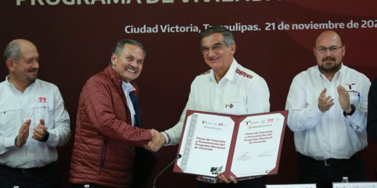 A poco más de un mes de haber iniciado el gobierno de la presidenta Claudia Sheinbaum, en Tamaulipas ya se aterrizan los programas para el desarrollo y bienestar social, aseguró el gobernador Américo Villarreal Anaya al firmar con el director general del Instituto del Fondo Nacional de la Vivienda para los Trabajadores (INFONAVIT), Octavio Romero Oropeza, el convenio de colaboración que permitirá la construcción de 43 mil viviendas en 29 municipios del estado y el otorgamiento de 55 mil créditos.