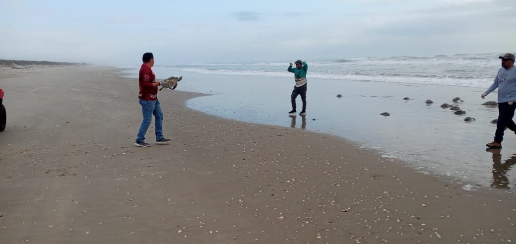 En total fueron 62 tortugas verdes, las que fueron rescatadas de la onda gélida que azotó al estado la semana pasada, y que fueron devueltas al mar para continuar con su recorrido ancestral.