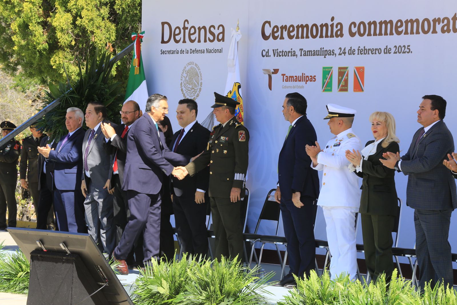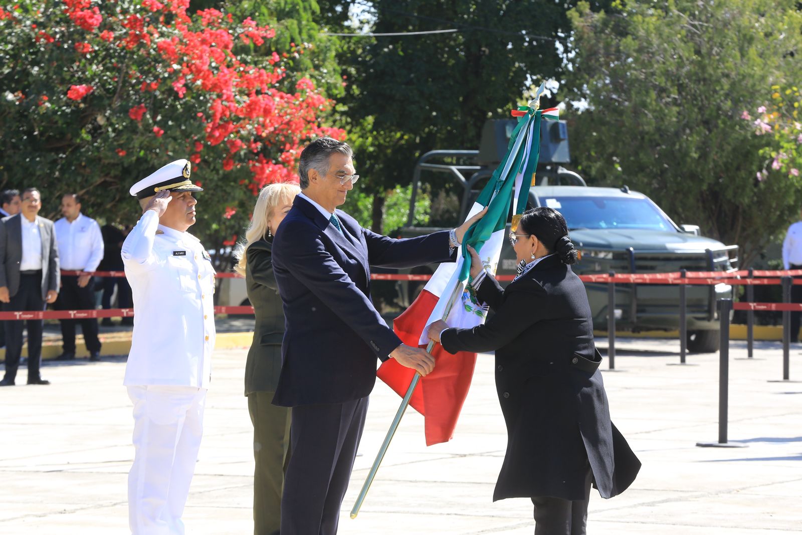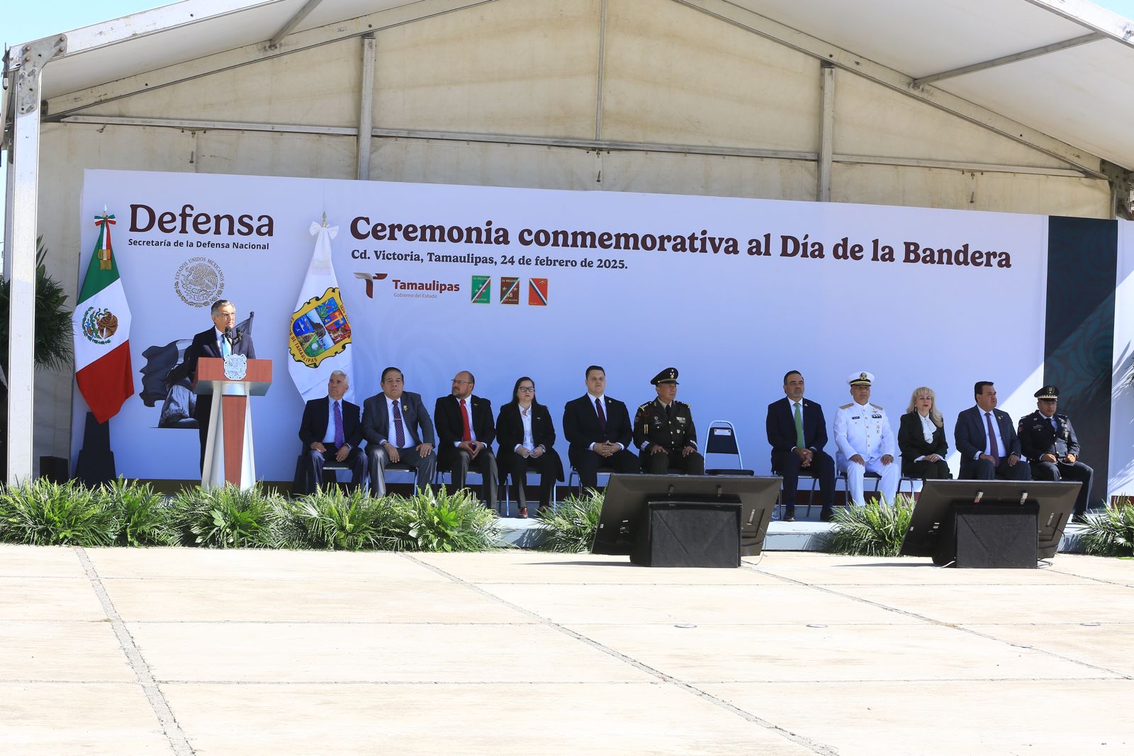 La bandera nacional es el símbolo máximo de nuestra mexicanidad y ha estado presente en las luchas e ideales de las grandes transformaciones de nuestra Patria, afirmó el gobernador Américo Villarreal Anaya al presidir la ceremonia conmemorativa del Día de la Bandera, en un acto simultáneo al evento encabezado en la Ciudad de México por la presidenta Claudia Sheinbaum Pardo y que fue presenciado aquí mediante enlace virtual.