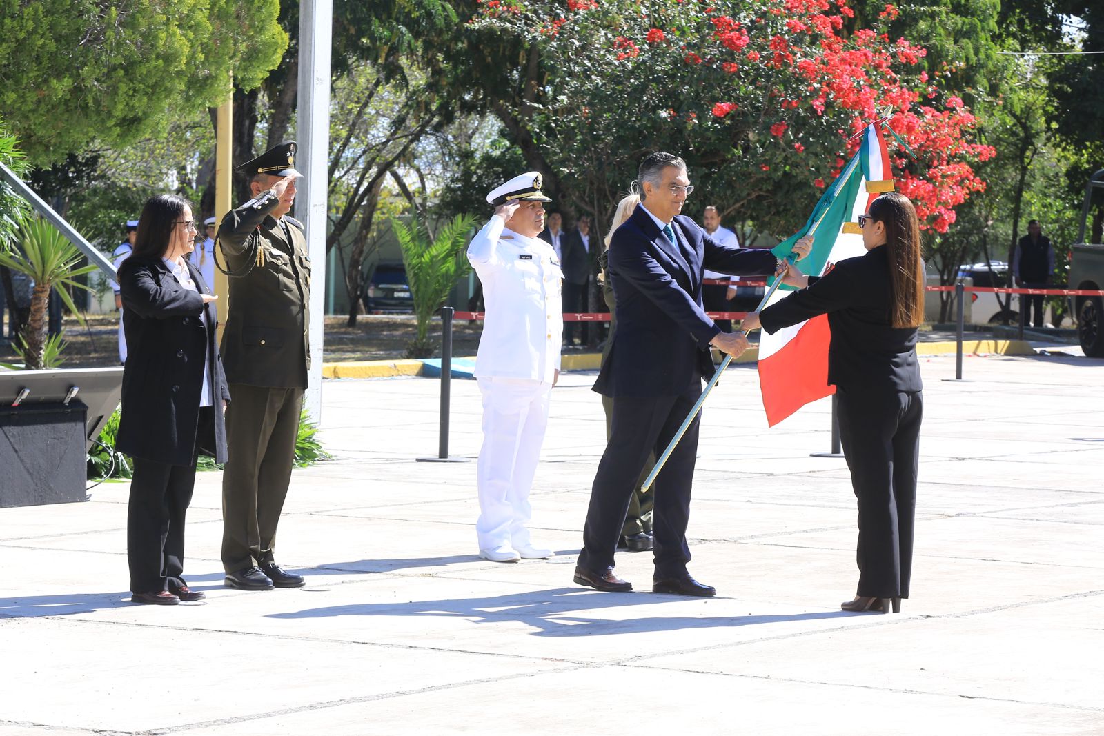 El gobernador abanderó a las escuelas primarias: Guadalupe Victoria, Lázaro Cárdenas, Redención del Proletariado, Juana de Asbaje y Francisco Márquez, de esta capital.