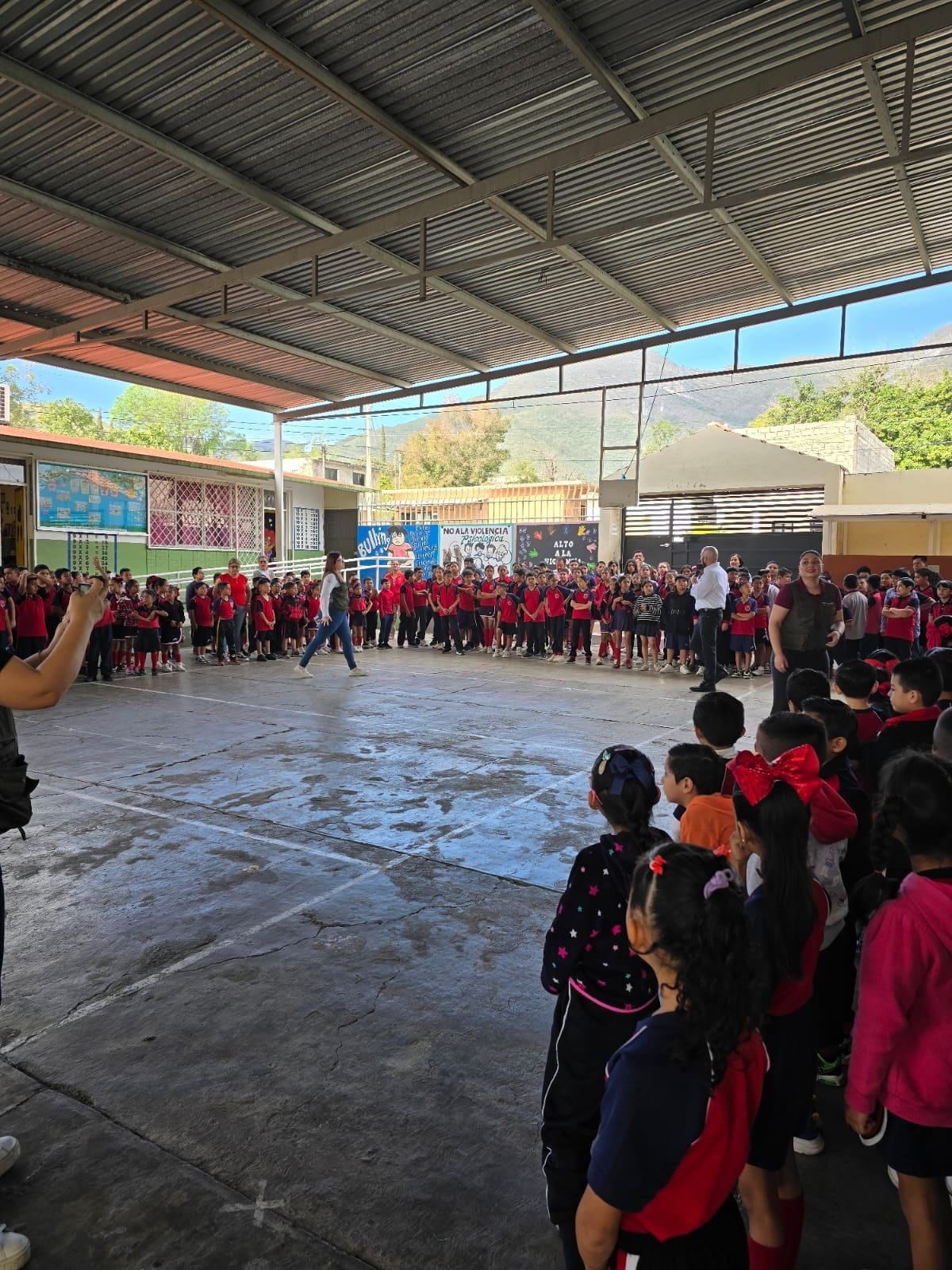 “Nos da mucho gusto el poder estar el día de hoy con ustedes dando el inicio a las jornadas de pláticas de sensibilización sobre inclusión. Comparto con ustedes que el Sistema Integral de los Derechos de Niñas, Niños y Adolescentes promueve sus derechos como la educación, el juego, la salud, la familia, entre otros, a través de estas actividades en escuelas”, señaló.