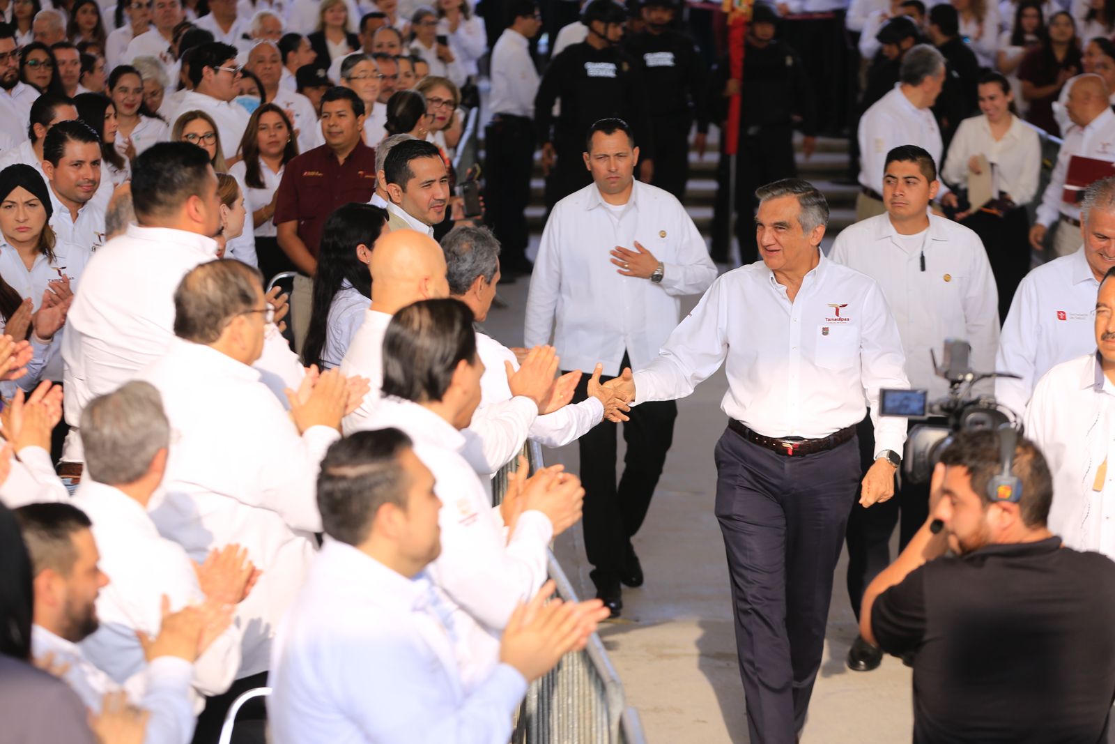 Al presidir la ceremonia cívica de honores de este lunes en la explanada de la Unidad Deportiva Adolfo Ruiz Cortines, de esta capital, el mandatario tamaulipeco destacó los esfuerzos del Gobierno del Estado para contar con mejores herramientas y la planeación adecuada para que las y los trabajadores del sector salud puedan desarrollar mejor su trabajo y sus destrezas.