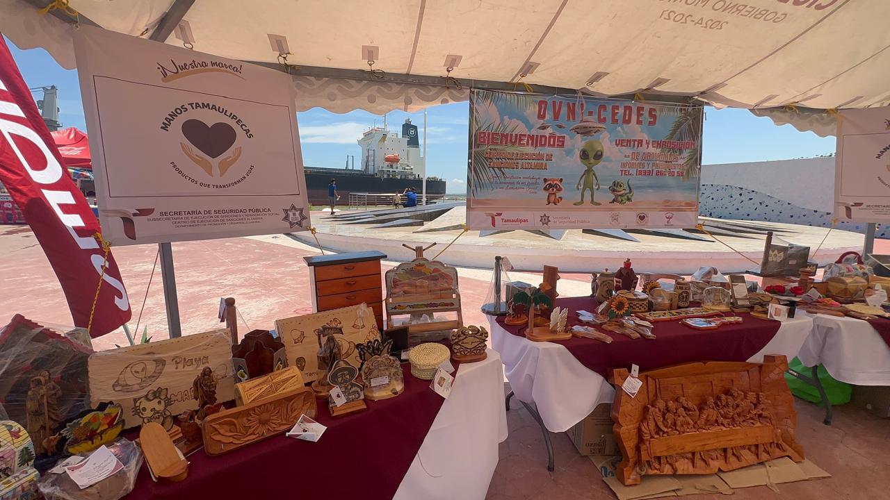 Como parte de las acciones de promoción del trabajo realizado por personas privadas de la libertad (PPLs) en el Centro de Ejecución de Sanciones (CEDES) del municipio de Altamira, se llevó a cabo la instalación de un módulo de venta de artesanías en la Playa Miramar.