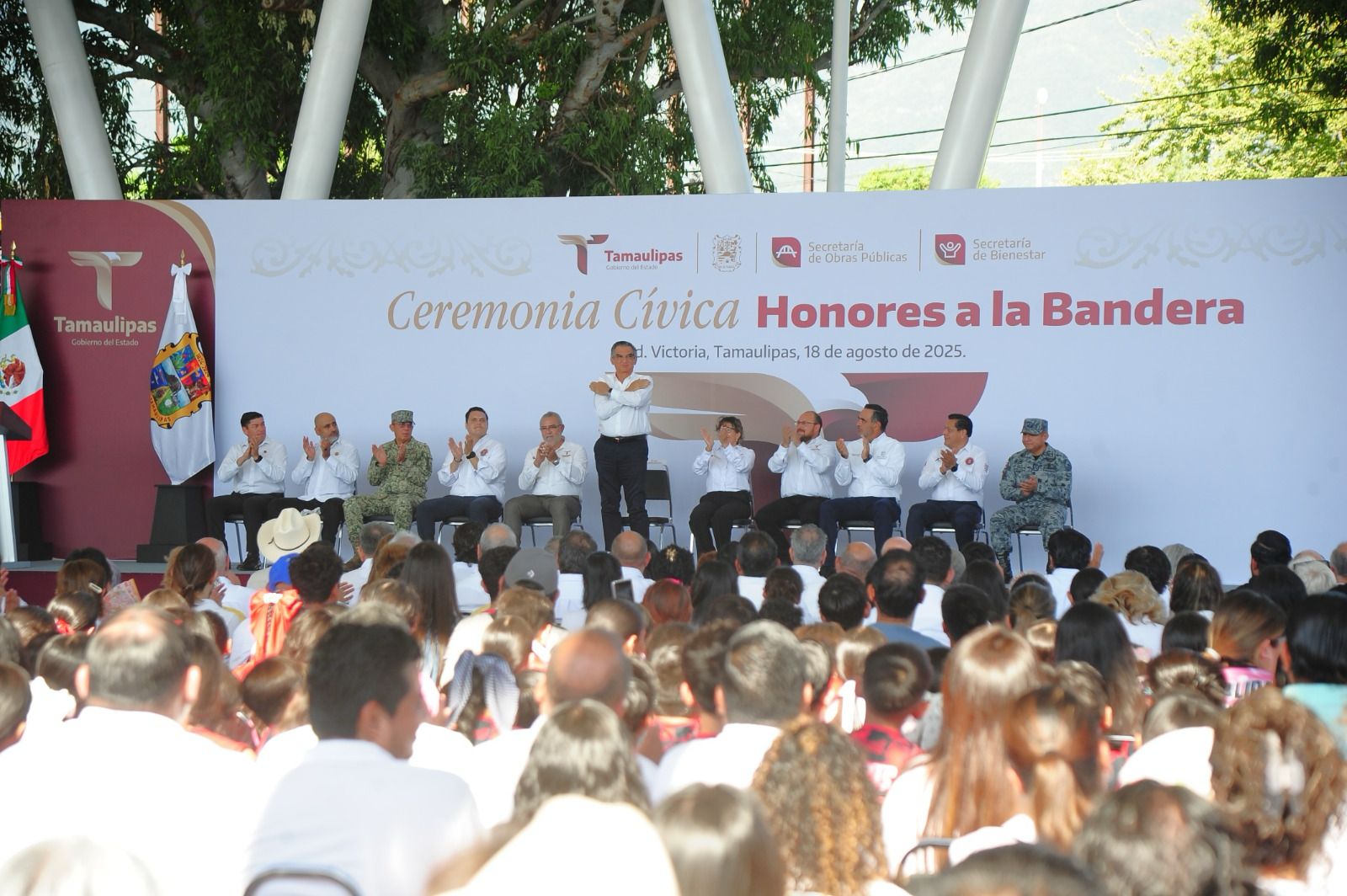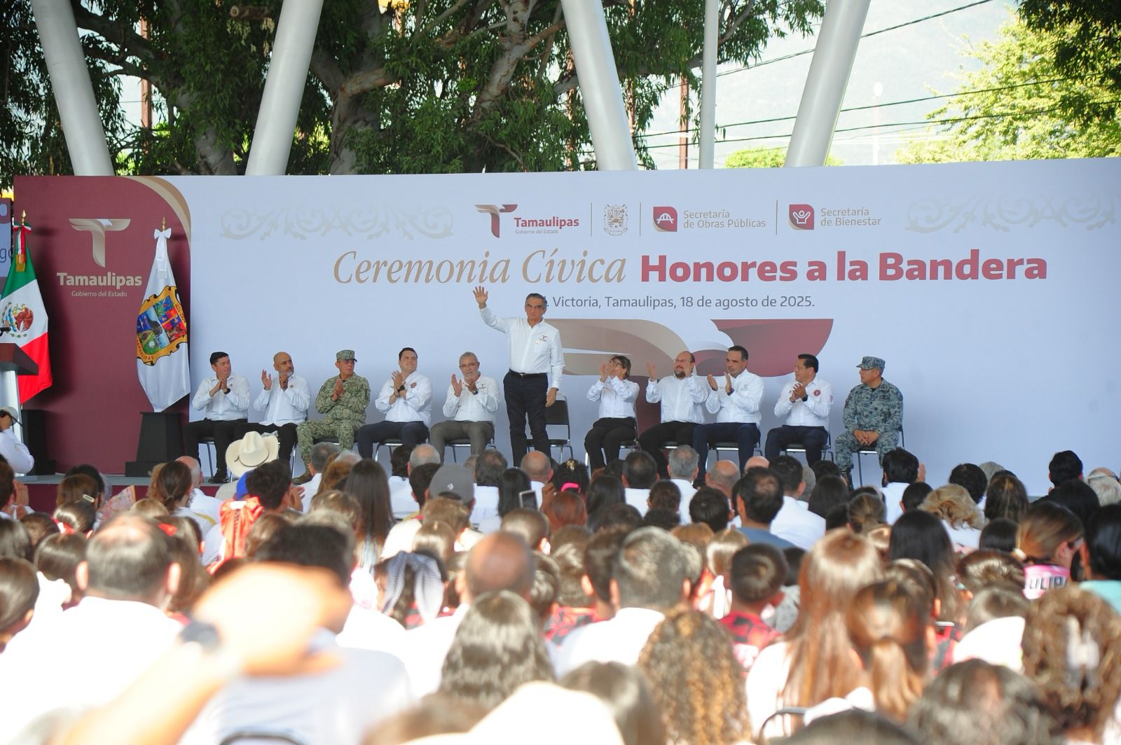 En la ceremonia cívica acompañaron al gobernador: Silvia Casas González, secretaria de Bienestar Social; Humberto Prieto Herrera, presidente de la Junta de Gobierno del Congreso del Estado; Hernán de la Garza Tamez, presidente del Supremo Tribunal de Justicia; Héctor Joel Villegas González, secretario general de Gobierno; el diputado federal José Braña Mujica; Francisco Adrián Cruz Martínez, presidente de la Mesa Directiva del Congreso; Marcelo Abundiz Ramírez, presidente de la Comisión de Infraestructura y Desarrollo Urbano; general Enrique García Jaramillo, comandante de la 48 Zona Militar; y el coronel Daniel Lugo, jefe de Coordinación Policial, en representación del coordinador estatal de la Guardia Nacional.