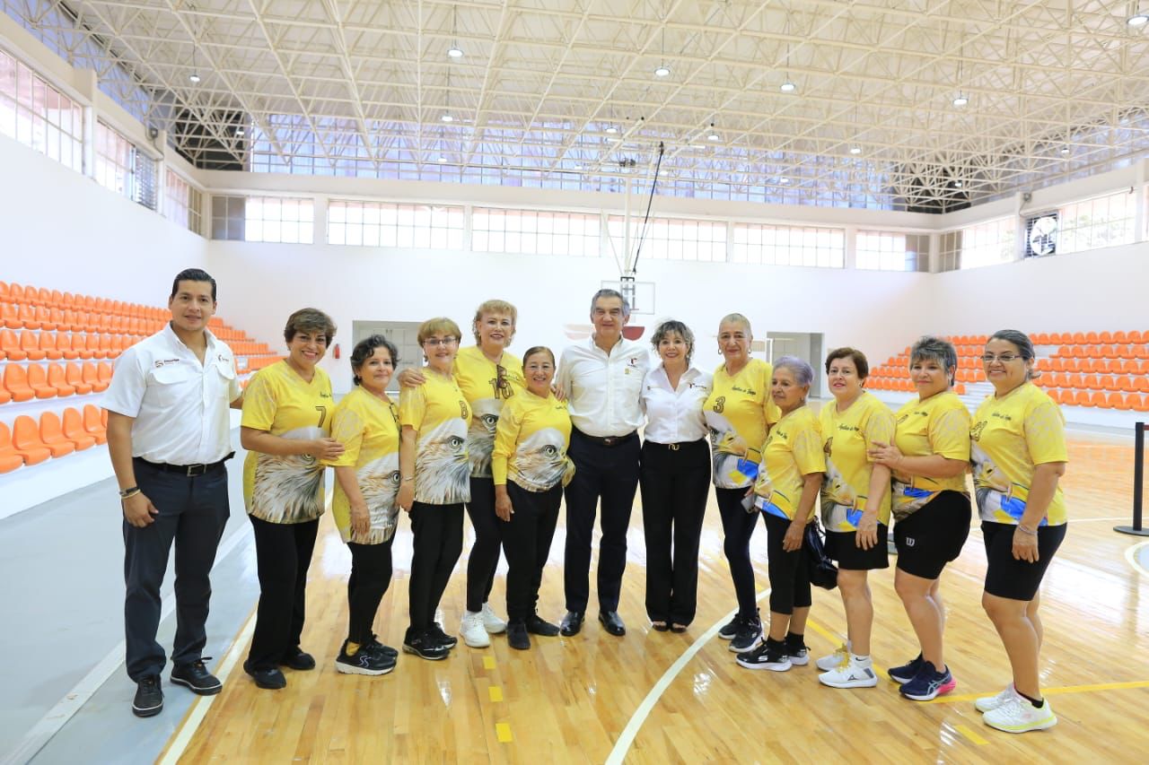 Al término de la ceremonia de honores, el gobernador ingresó al gimnasio Manuel Raga, en donde convivió con integrantes del equipo de cachibol Águilas de Fuego y con el equipo de basquetbol Panteras.