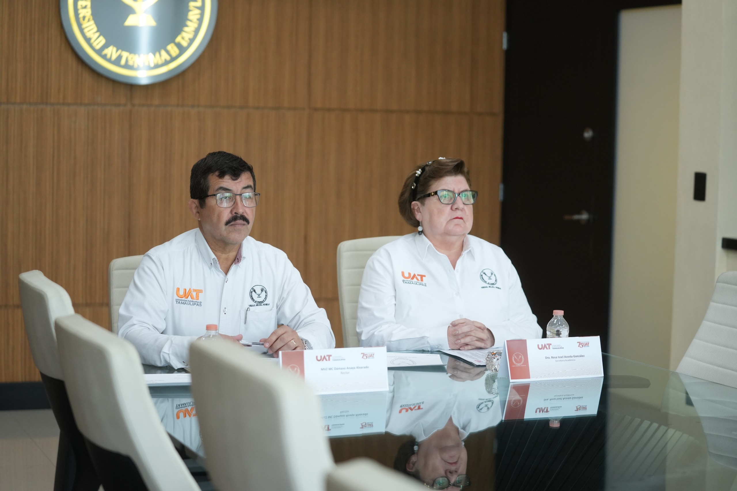 Durante el acto protocolario, que presidió el rector, en sesión remota desde el Centro de Gestión del Conocimiento del Campus Victoria, resaltó que este ejercicio representa un paso fundamental en la meta de lograr el cien por ciento de la oferta educativa de la UAT en programas de calidad.