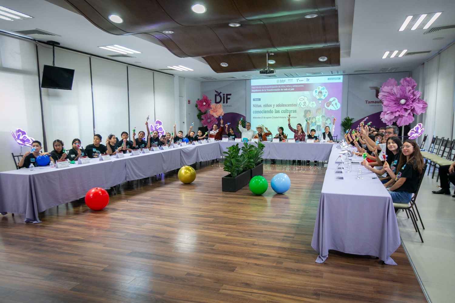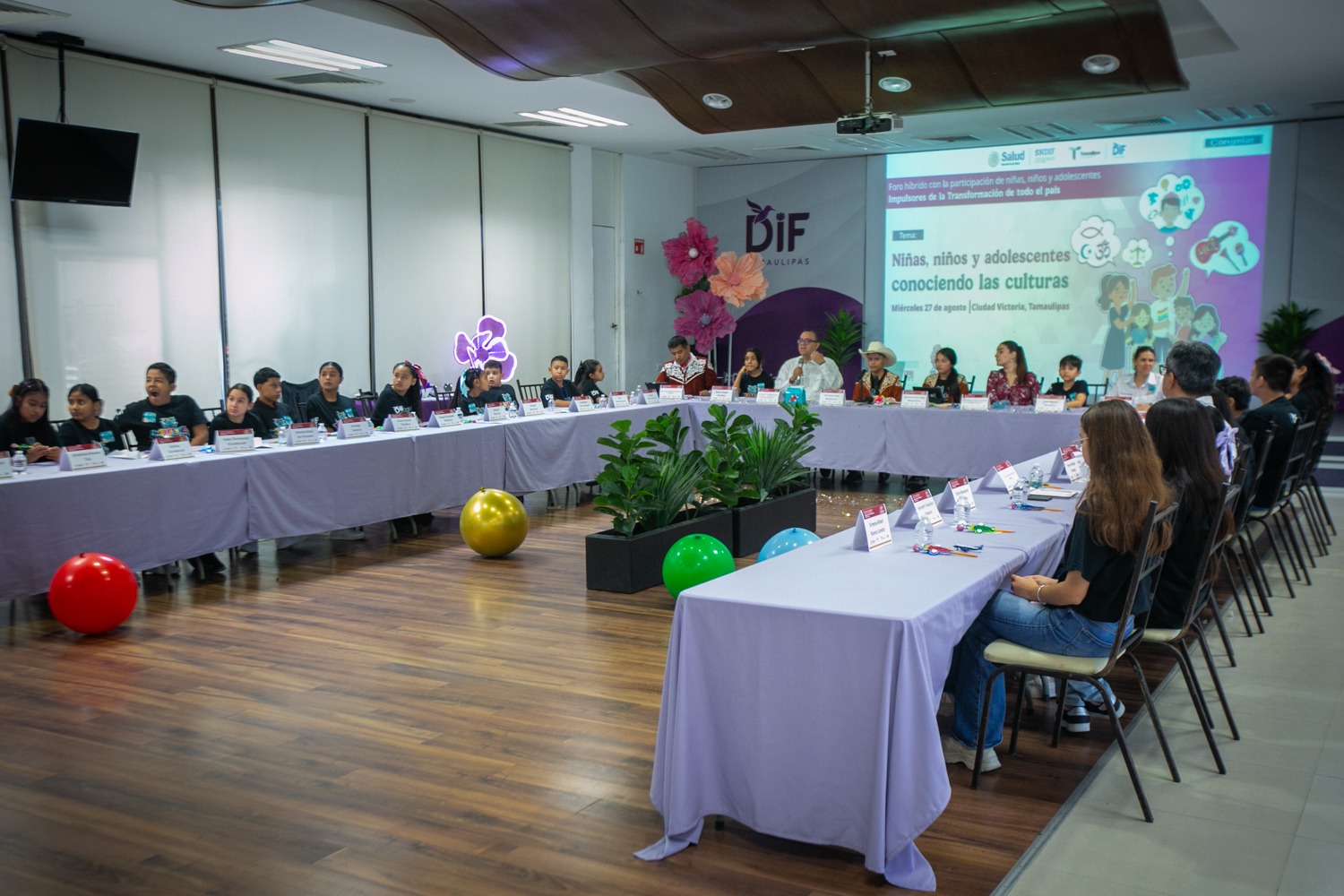 Para continuar trabajando en la promoción y difusión del derecho que tienen los menores a la libertad de convicciones éticas, pensamiento, conciencia, religión y cultura, el Sistema para el Desarrollo Integral de la Familia de Tamaulipas, presidido por la doctora María de Villarreal, con el apoyo de personal del Sistema Nacional DIF, llevó a cabo el foro híbrido “Niñas, Niños y Adolescentes Conociendo las Culturas”.