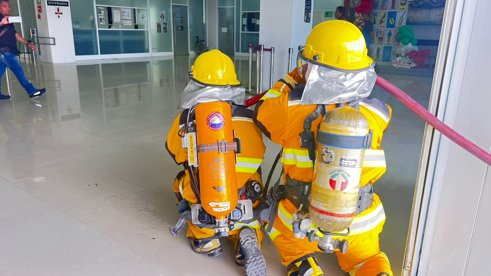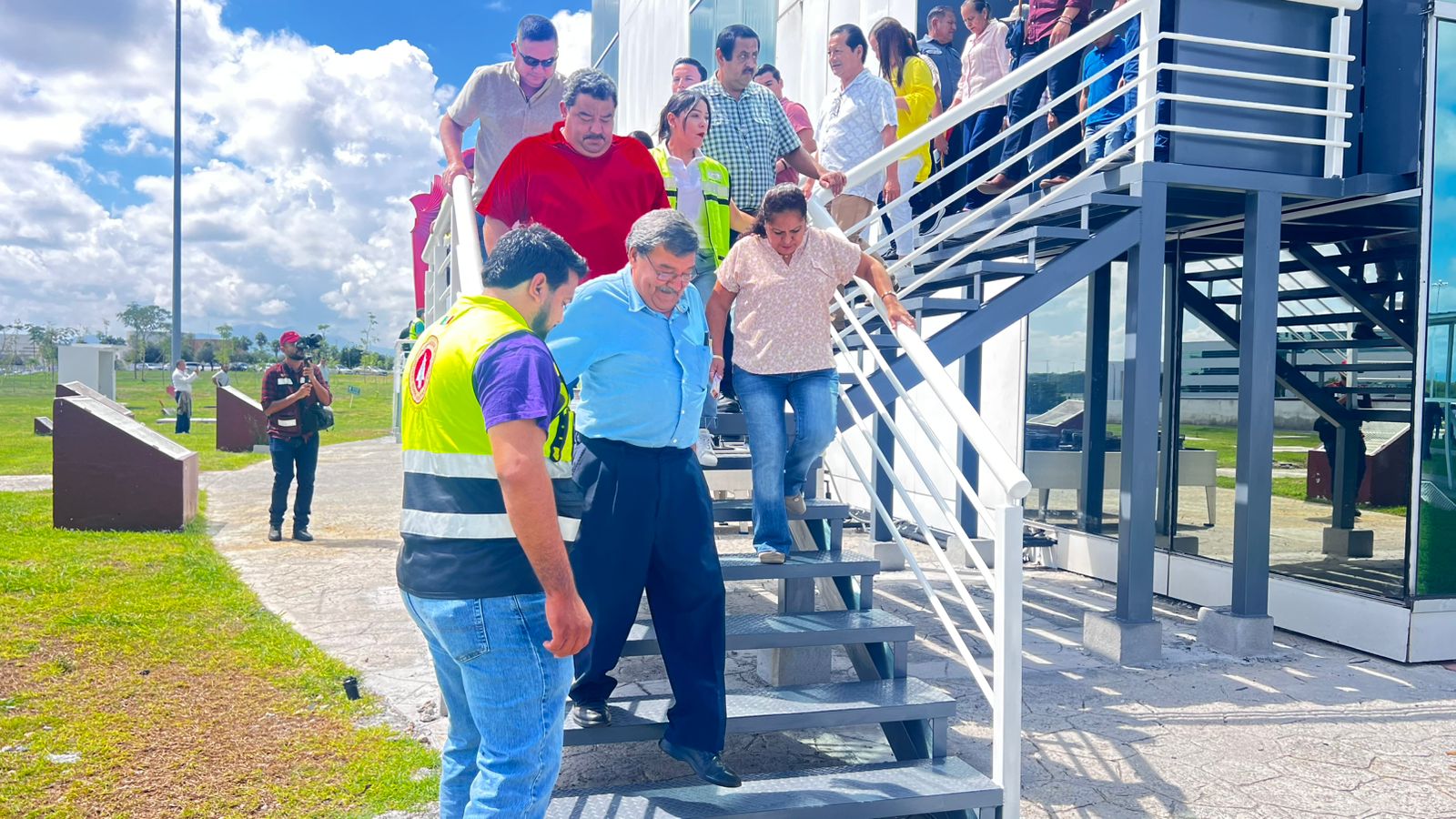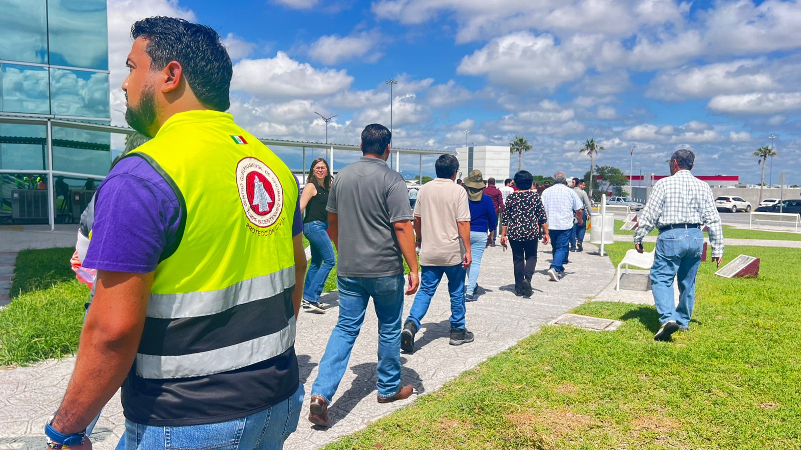 Durante el simulacro en la Torre Bicentenario , el coordinador estatal encabezó la evacuación junto con la secretaria de Administración, Luisa Eugenia Manautou Galván; la secretaria de Bienestar, Silvia Lucero Casas González; y el secretario de Desarrollo Rural, Pesca y Acuicultura, Antonio Varela Flores.