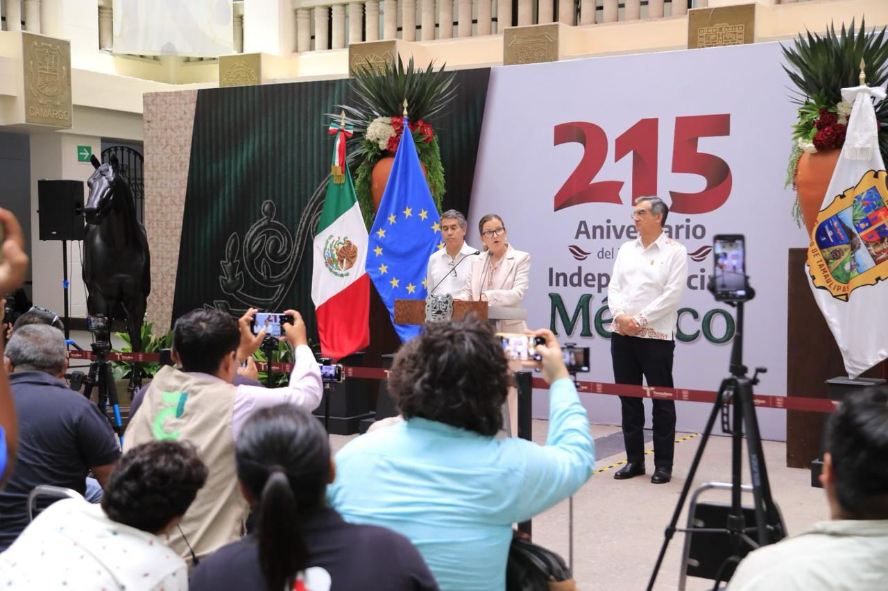 Destacó además que la Unión Europea es el segundo socio comercial de México y el segundo inversor en Tamaulipas, lo que abre nuevas oportunidades en sectores como agroindustria, manufactura y energías limpias. En este contexto, señaló que la modernización del Acuerdo Global entre México y la Unión Europea permitirá explorar mercados europeos para productos emblemáticos tamaulipecos como la naranja, la miel y la cuera, que podrían posicionarse en un mercado de más de 450 millones de consumidores.