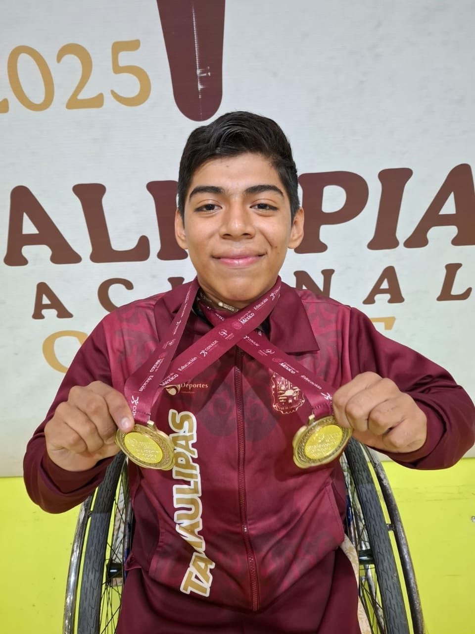 Desde Altamira, Jesús Oziel Campos Hernández se coronó con doble medalla de oro en los 100 y 800 metros T34, mientras que Ángel Rolando García Santiago repitió la hazaña al ganar oro en 100 y 800 metros T53.