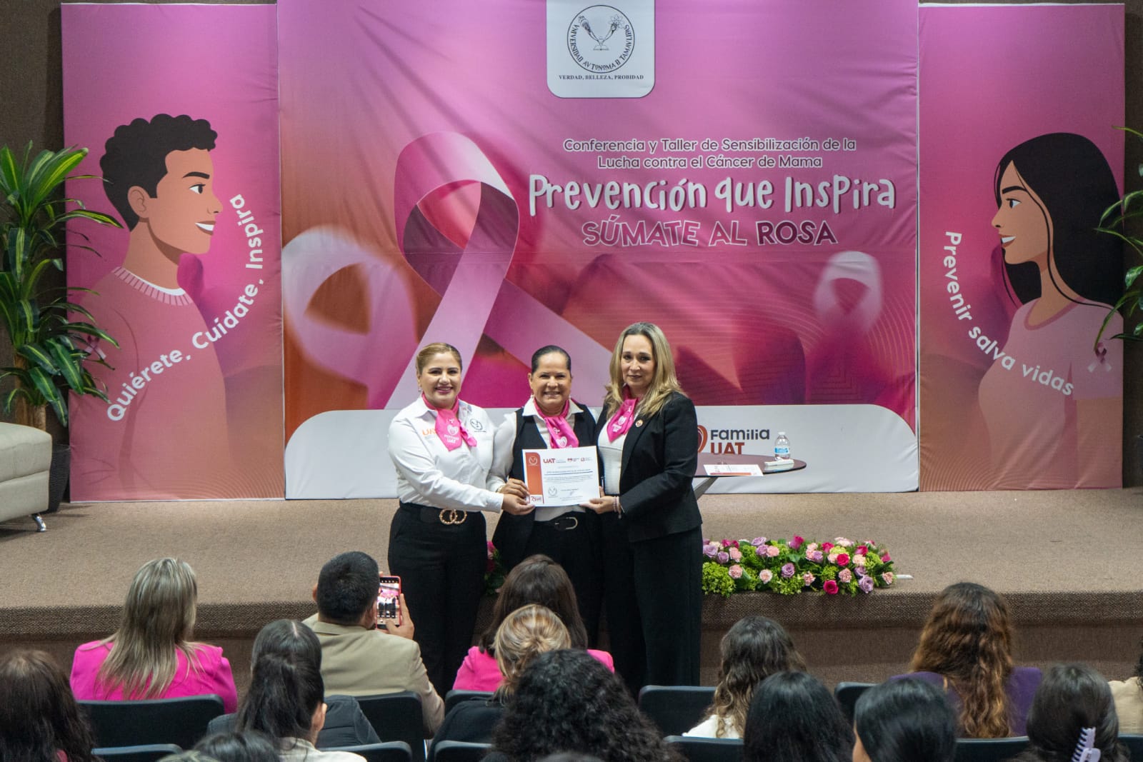 Esta actividad forma parte de la serie de eventos que la UAT organiza durante el mes de octubre en sus diferentes dependencias, con el propósito de fomentar la conciencia sobre la detección temprana del cáncer de mama y reforzar el compromiso institucional con la salud integral y el bienestar de su comunidad universitaria.