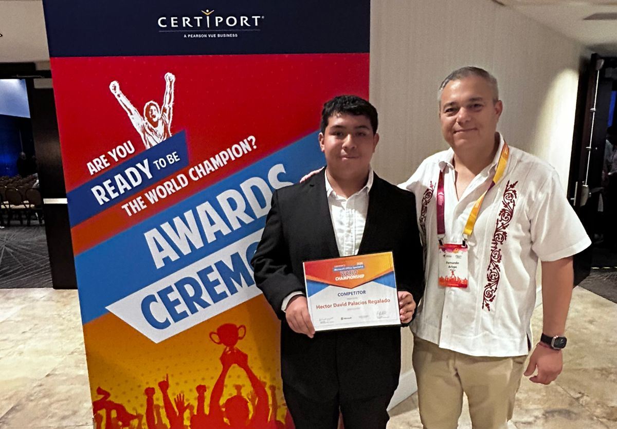Explicó que la edición número 23 de este campeonato mundial reunió a 190 de los mejores estudiantes de entre 13 y 22 años, provenientes de más de 80 países, donde Héctor David compitió en la categoría de Excel (Office 2019), destacándose como el único representante mexicano en el Top 10 global.
