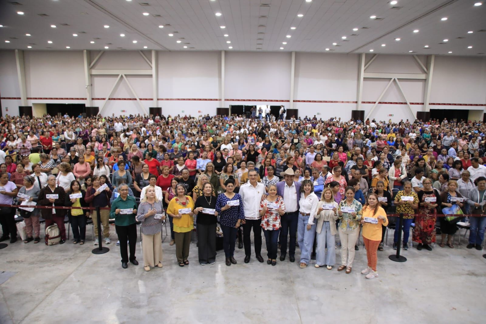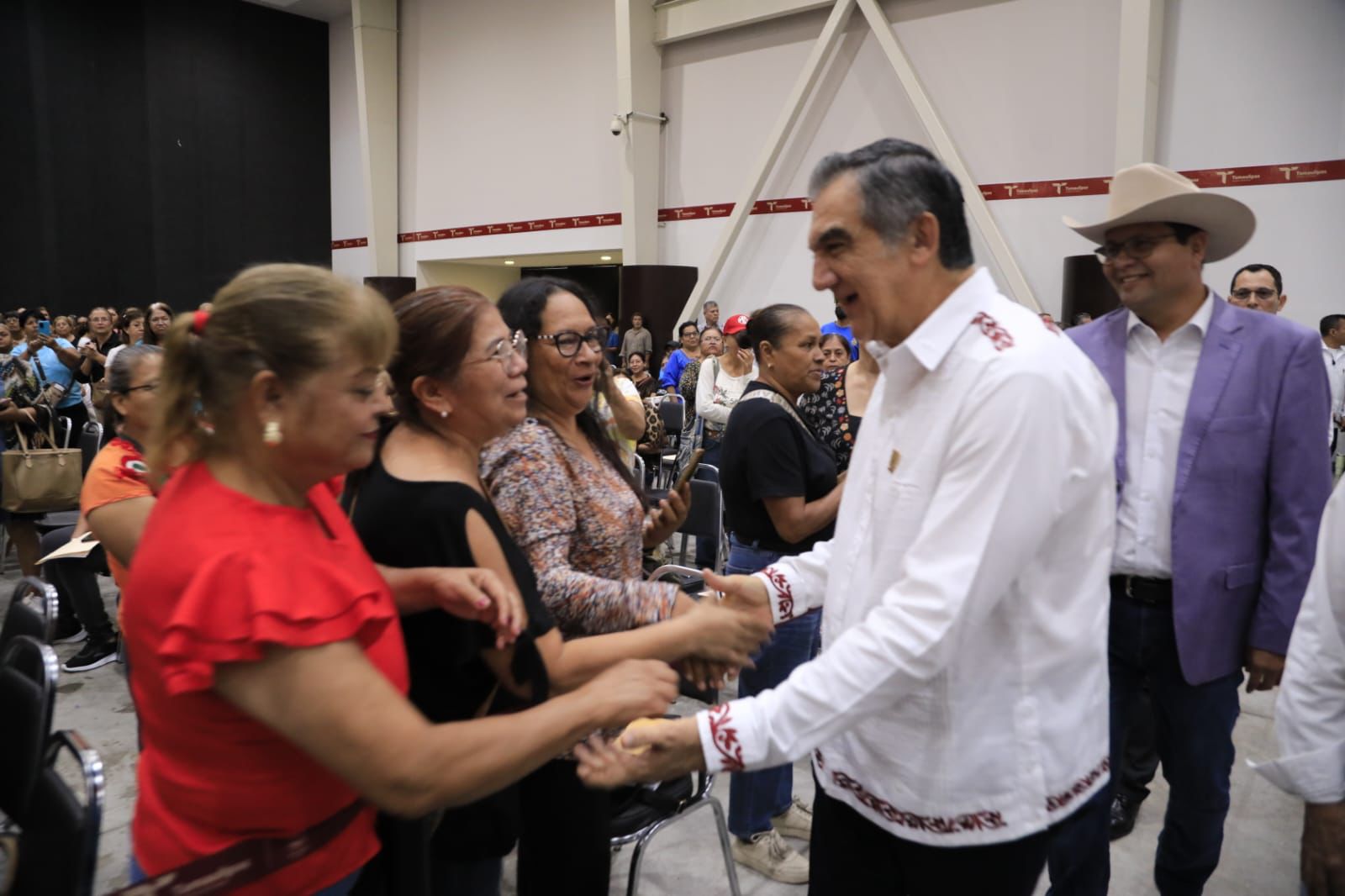 Durante la entrega simbólica a 30 de las dos mil beneficiarias presentes, acompañado por Luis Lauro Reyes Rodríguez, delegado de Programas Federales para el Desarrollo en Tamaulipas, y de Silvia Casas González, secretaria de Bienestar Social, el gobernador mencionó que, tal como lo ha señalado la presidenta, este apoyo es un reconocimiento a la contribución que durante muchos años han tenido las mujeres como protectoras de la familia y protectoras de los valores más valiosos de la formación e integración de la sociedad.