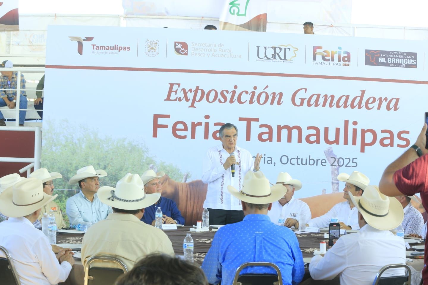 Tanto el presidente de la UGRT, José Guerrero Gamboa, como Felipe de Jesús Sáenz Santos, presidente de la Asociación Brangus Rojo de México A.C., y Luis Gerardo Marroquín Salazar, presidente de la Asociación Mexicana de Criadores de Ganado Beefmaster, agradecieron el apoyo brindado por el Gobierno del Estado para llevar a cabo eventos de carácter nacional durante la Feria Tamaulipas 2025.