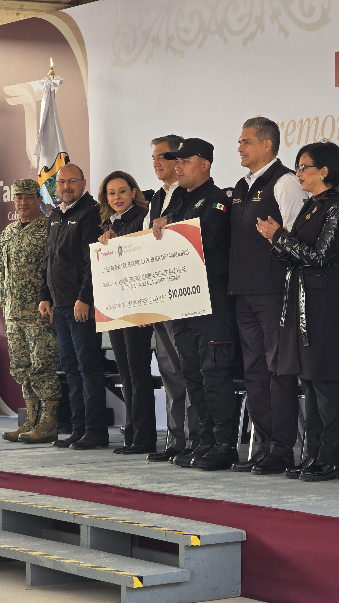 Asimismo se entregó un reconocimiento y estímulo económico a Jorge Patricio Ruiz Salas, autor del nuevo himno a la Guardia Estatal, además de oficios de ascenso de grado y reconocimientos por méritos académicos y deportivos, así como equipo táctico para las y los elementos de la Guardia Estatal.
