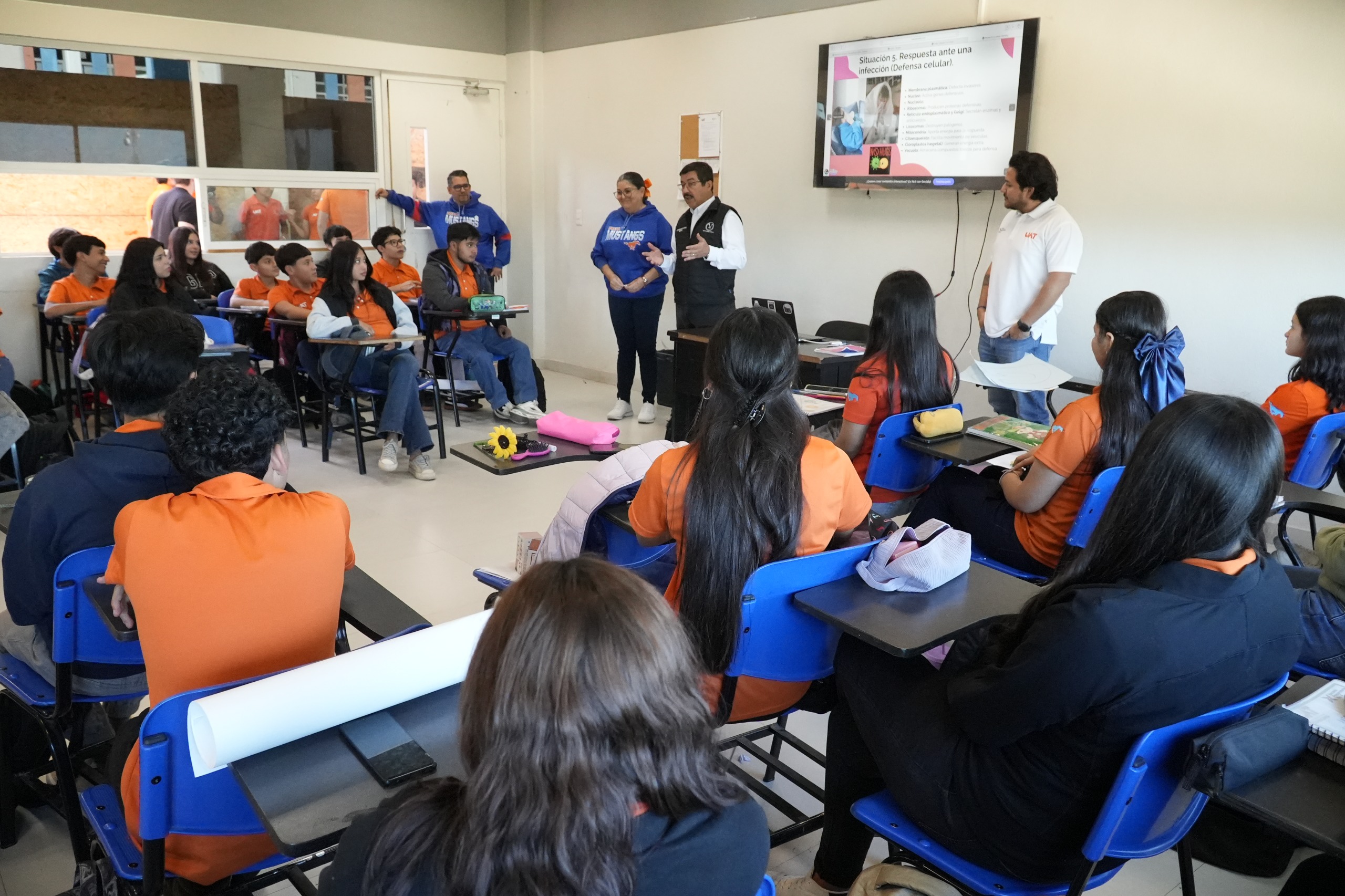 Durante su estancia, el rector conoció al grupo del programa bilingüe, una de las principales fortalezas académicas de la Preparatoria No. 3, que permite a los jóvenes cursar diversas asignaturas en inglés, fortaleciendo sus competencias lingüísticas, comunicativas y de liderazgo desde el nivel medio superior.