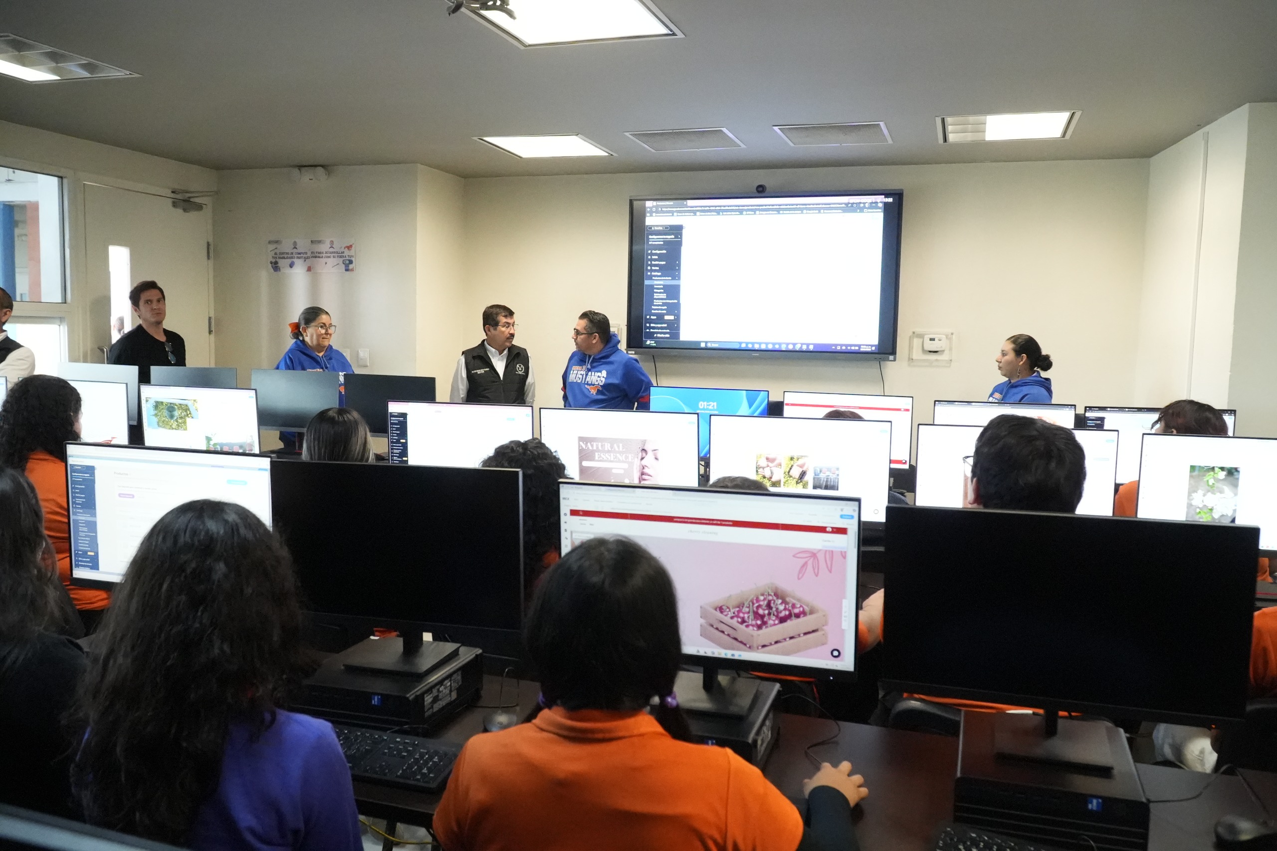 Asimismo, recorrió el centro de cómputo, recientemente modernizado con 40 nuevas computadoras de última generación y tres pantallas interactivas instaladas tanto en el área de cómputo como en aulas del plantel.