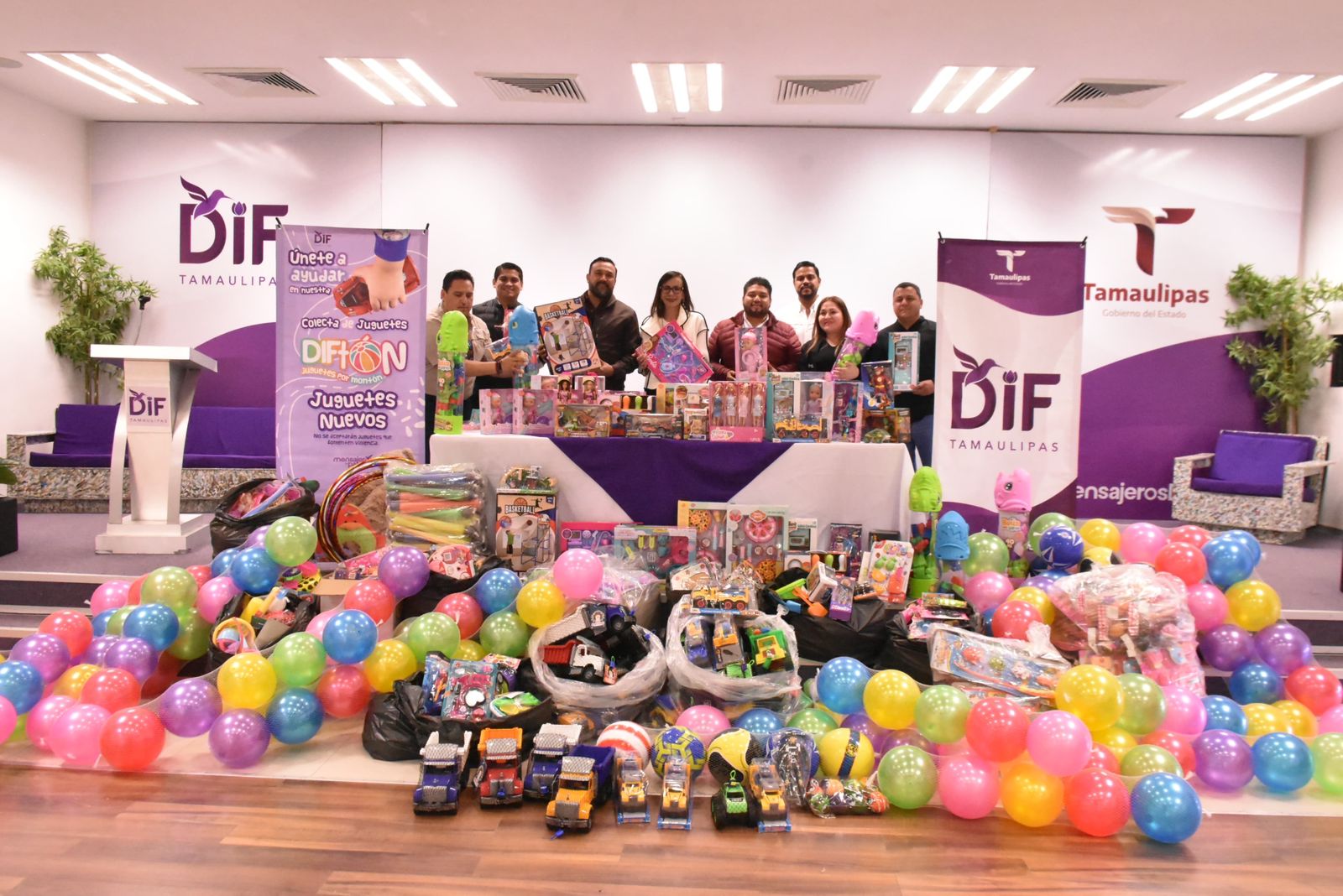 Trabajadores de la Secretaría de Turismo de Tamaulipas se sumaron con entusiasmo a la campaña DIFTON 2025 “Juguetes por montón”, recolectando juguetes en apoyo permanente a las acciones impulsadas por la presidenta del DIF Tamaulipas, la doctora María de Villarreal.