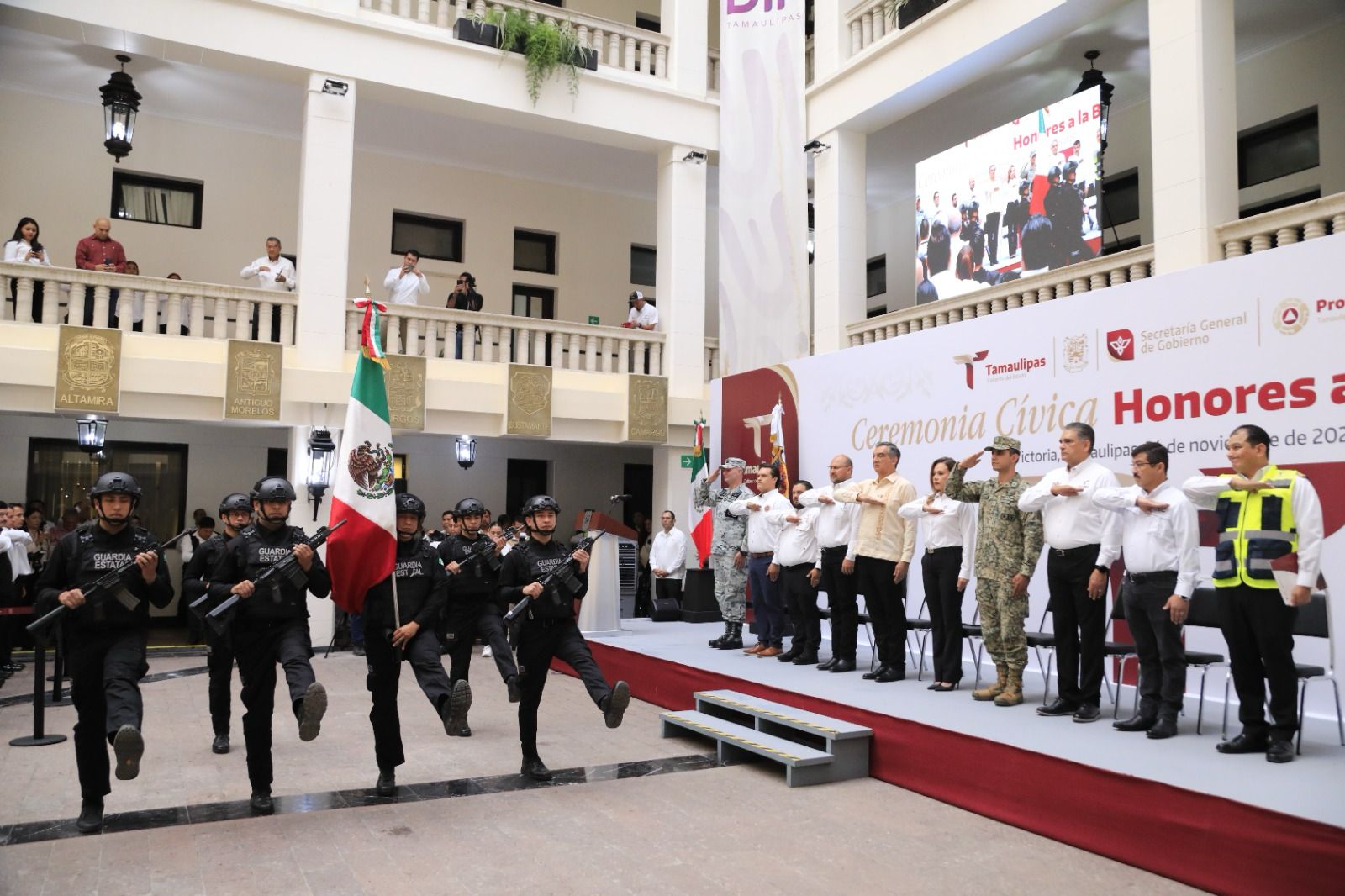 En la Ceremonia de Honores a la Bandera realizada en Palacio de Gobierno, el mandatario estatal destacó el espíritu de servicio del personal que brindó este apoyo: “Queríamos hacer significativo el reconocimiento a los servicios aéreos de Tamaulipas, que independientemente de cumplir con su labor diaria, se han significado desde el punto de vista humanista”, señaló.