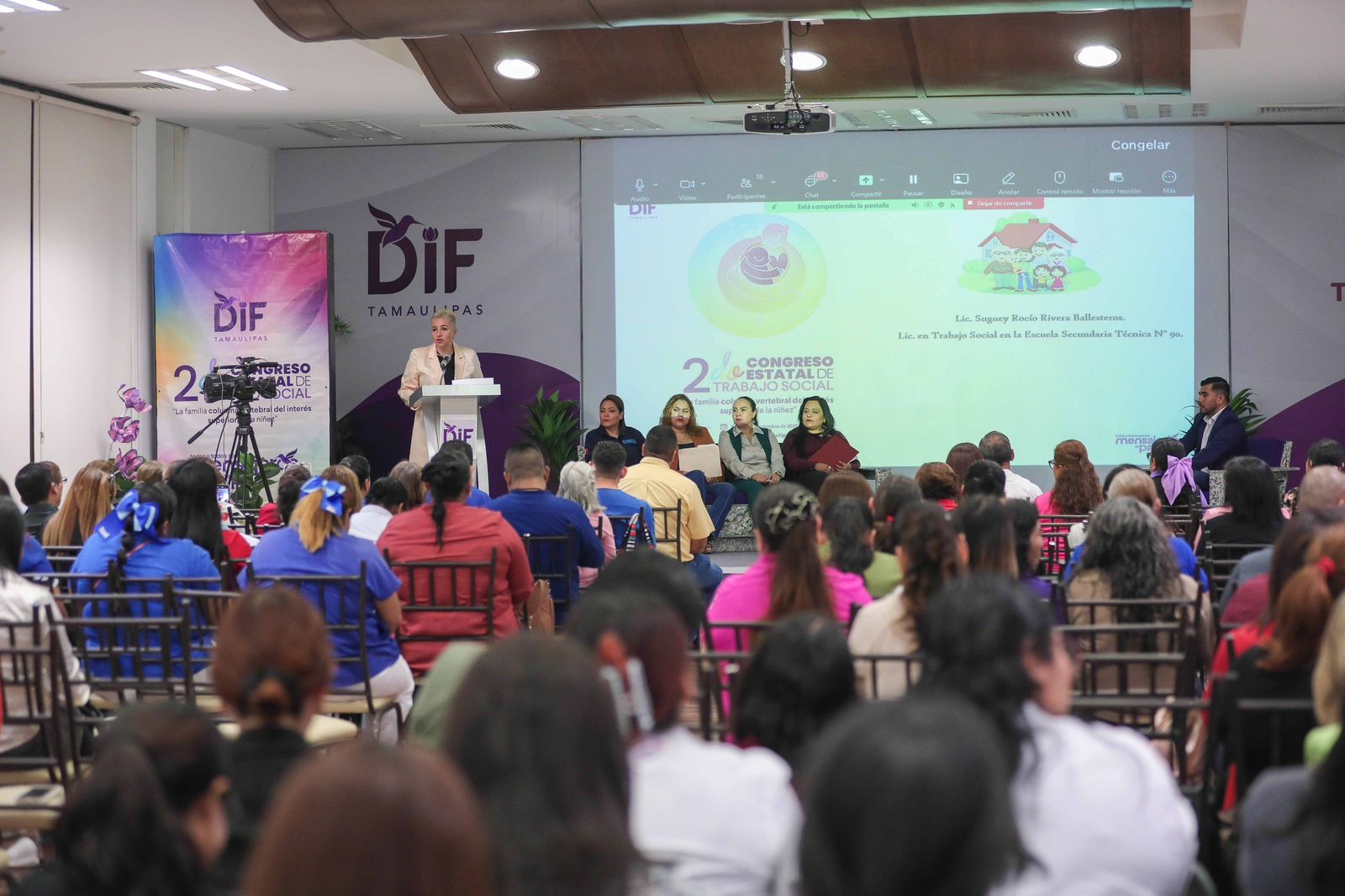 El Sistema DIF Tamaulipas, encabezado por la doctora María de Villarreal, llevó a cabo el Segundo Congreso Estatal de Trabajo Social “La familia, columna vertebral del interés superior de la niñez”, un espacio orientado a fortalecer las herramientas profesionales para la atención y acompañamiento de las familias, así como de niñas, niños y adolescentes en el estado.