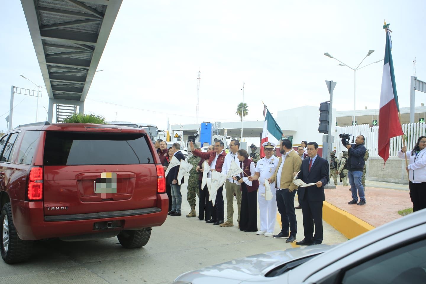 Al dar el banderazo de inicio del Operativo Especial Invierno 2025 del Programa “Héroes Paisanos”, en la explanada del módulo de Control de Importación e Internación Temporal de Vehículos (CIITEV) del Puente Internacional Juárez-Lincoln, Américo Villarreal aseguró que los miles de paisanos que llegan a través de esta frontera tamaulipeca van a encontrar autoridades diligentes, honestas y dispuestas, que se han coordinado entre los tres órdenes de gobierno para acompañar su retorno brindando seguridad, toda clase de servicios y la atención que se merecen.