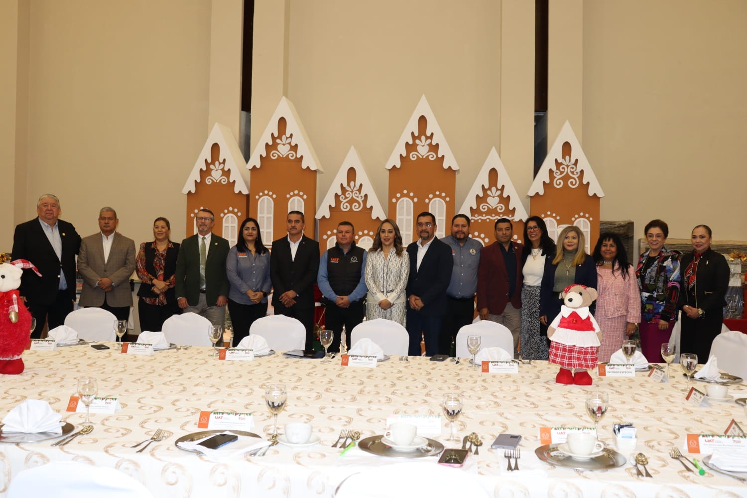 La Universidad Autónoma de Tamaulipas (UAT) ofreció el tradicional festejo por la temporada navideña a sus docentes y trabajadores administrativos pertenecientes a los sindicatos de esta casa de estudios, con la finalidad de estrechar los lazos de compañerismo y seguir fomentando la unión entre la comunidad universitaria.