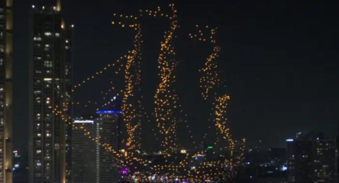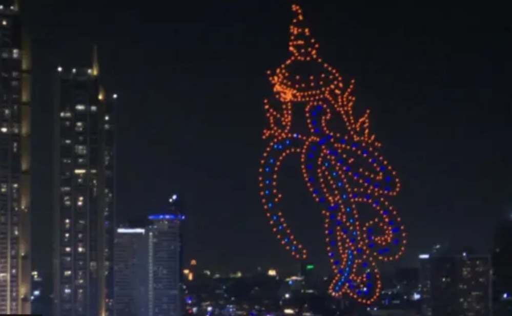 La capital de Tailandia ofreció un deslumbrante espectáculo de drones que dibujaron figuras multicolores en el cielo minutos antes de la medianoche. Al dar inicio el nuevo año, fuegos artificiales tomaron el relevo y marcaron la cuenta regresiva en Bangkok.