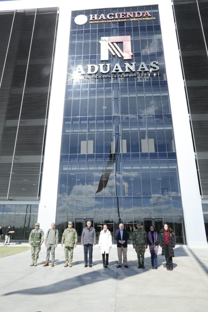 Nuevo Laredo, Tamaulipas.- Al inaugurar la nueva sede de la Agencia Nacional de Aduanas de México, en Nuevo Laredo, Tamaulipas, que representó una inversión de 4 mil MDP, la presidenta de México Claudia Sheinbaum Pardo afirmó que las instalaciones, «van a permitir mayor eficiencia, mayor productividad, mayor honestidad, mayor beneficio para las y los trabajadores de las aduanas», que desarrollan una labor fundamental.