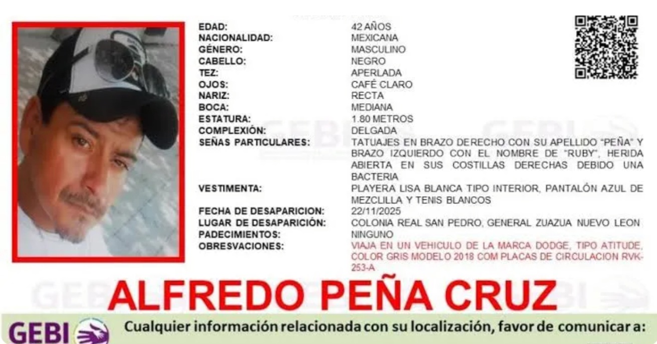 El último contacto con Alfredo ocurrió el pasado 22 de noviembre, cuando se encontraba en la colonia Real San Pedro, en Zuazua, Nuevo León. En ese momento, informó a su pareja que iniciaba su trayecto hacia territorio tamaulipeco; sin embargo, después de ese mensaje, su teléfono dejó de recibir llamadas.