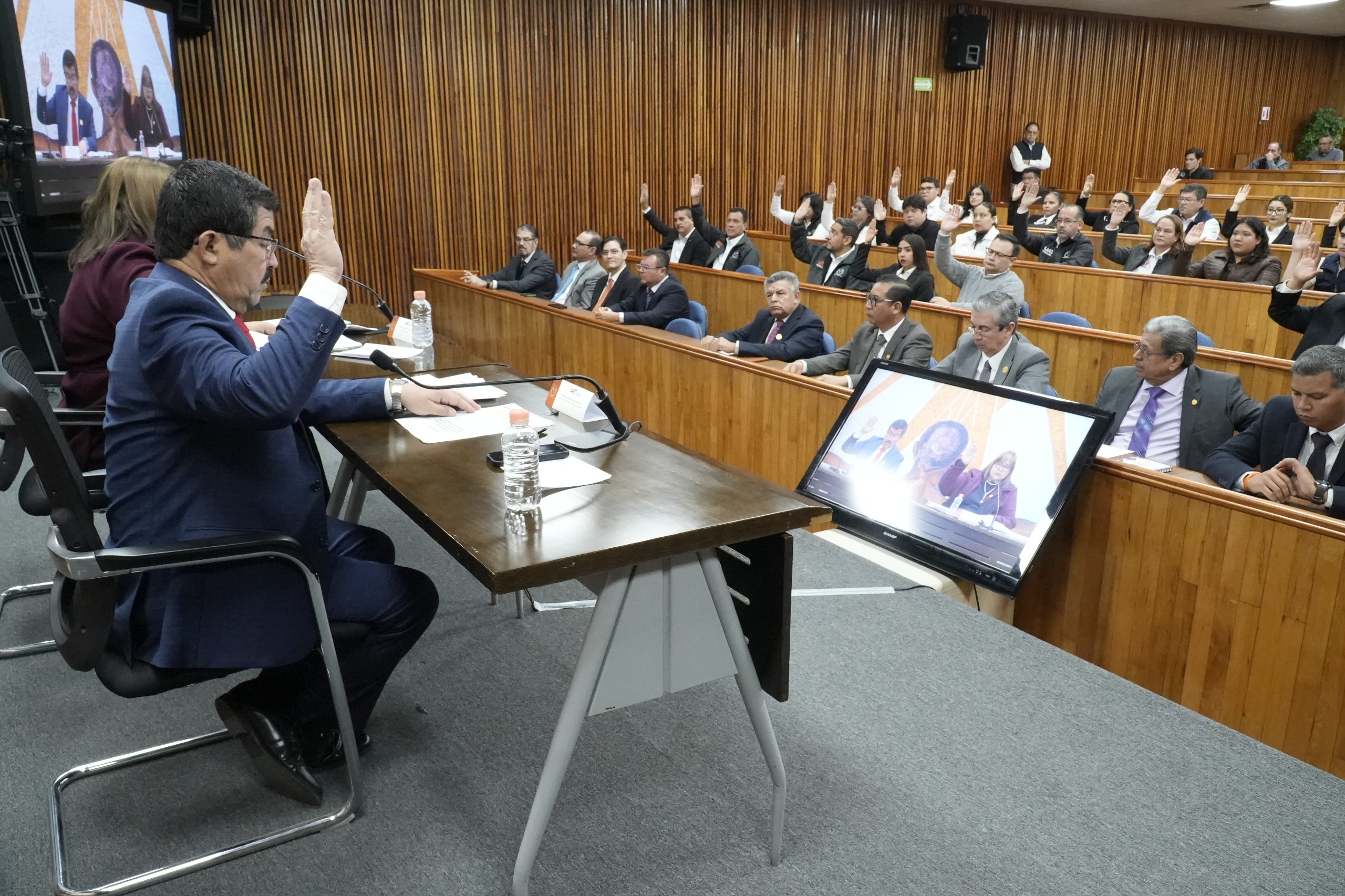 La sesión de trabajo de la Asamblea se llevó a cabo en el Centro de Excelencia del Campus Victoria, en la modalidad a distancia, con la asistencia de las y los directores y representantes de docentes y estudiantes asambleístas de las 26 dependencias académicas de la UAT que participaron desde las sedes norte, centro y sur del estado.