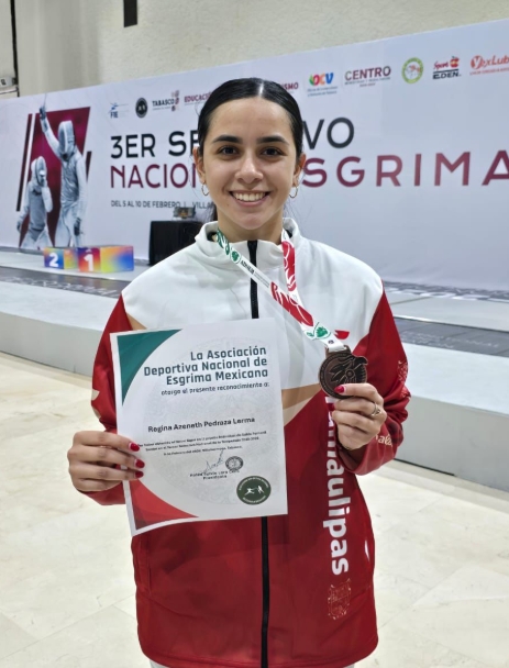 La Universidad Autónoma de Tamaulipas volvió a hacerse presente en el escenario deportivo nacional, luego de que sus representantes, Regina Azeneth Pedraza Lerma y Brandon Alan Romo Beltrán subieran al podio en el Tercer Selectivo Nacional de Esgrima, celebrado en Villahermosa, Tabasco.