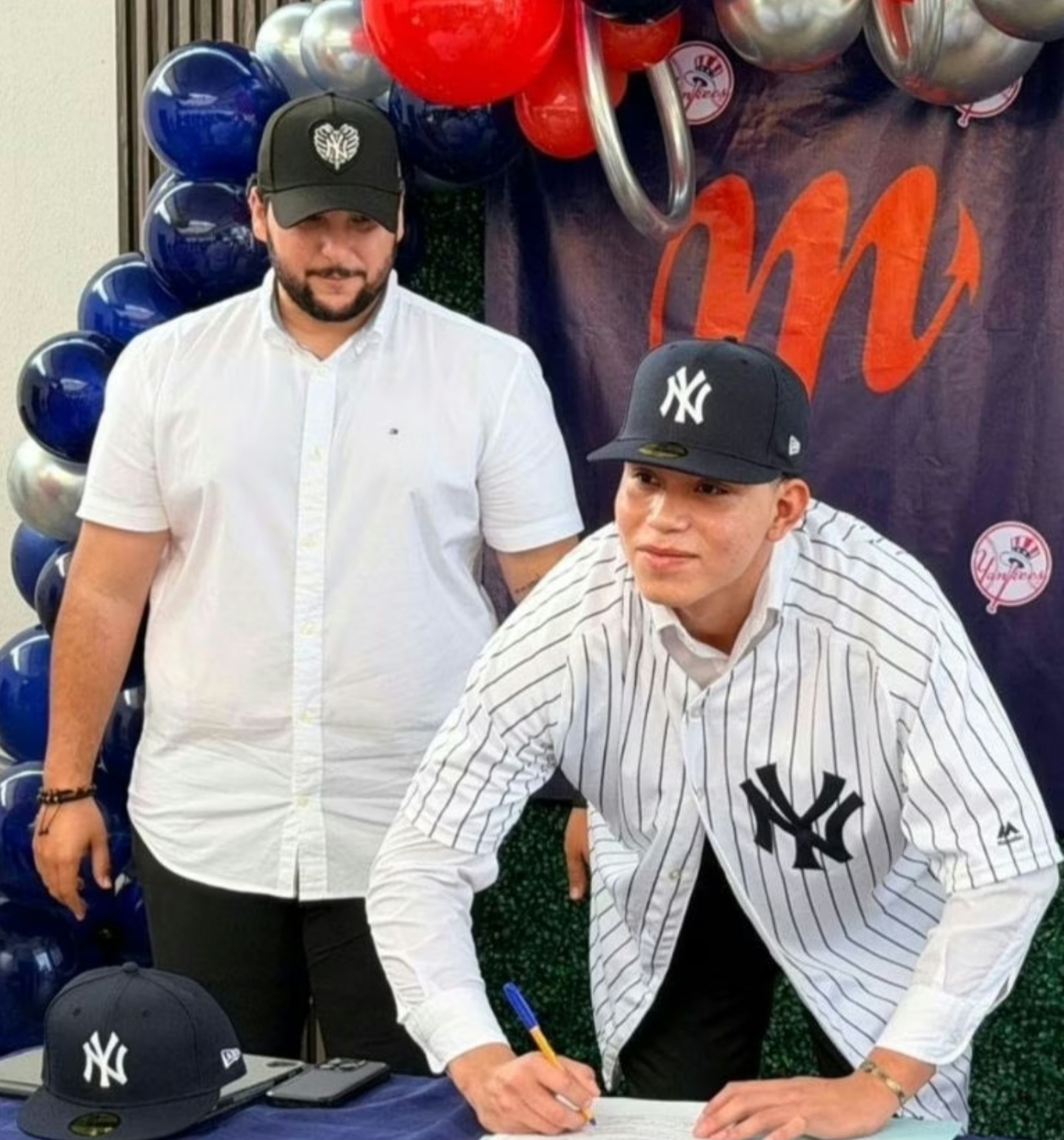 Rodeado de sus padres, familiares y promotores deportivos, Felipe de Jesús formalizó el contrato que lo vincula con los «Bombarderos del Bronx». Esta firma representa el primer paso hacia la cúspide del béisbol profesional, permitiéndole integrarse a las sucursales de desarrollo de la organización neoyorquina.