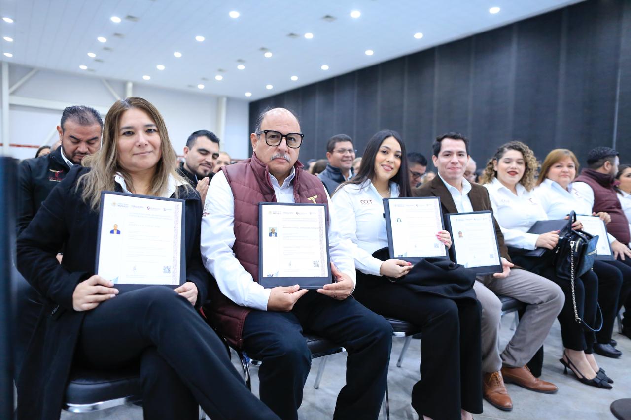 El mandatario tamaulipeco felicitó al equipo de la Secretaría del Trabajo por su esfuerzo para que Tamaulipas sea ejemplo en Política Laboral y, además, entregó 20 certificados «Conocer» del Consejo Nacional de Normalización y Certificación de Competencias Laborales a personal de las cinco coordinaciones regionales de Conciliación Laboral.