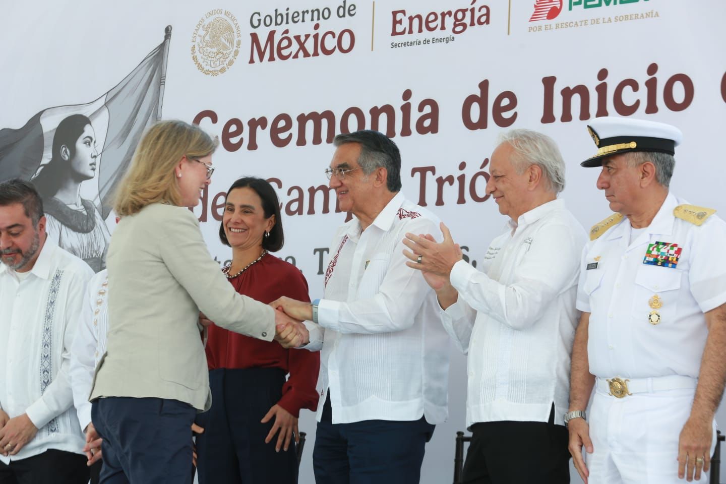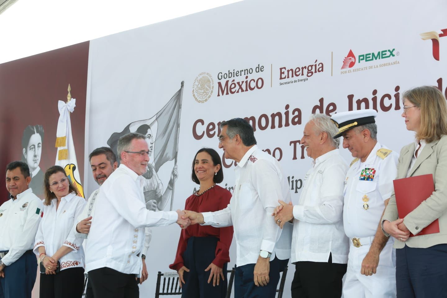 “Vamos a estar viniendo con ustedes a saludarlos, a solicitar su apoyo y a estar siempre con ustedes en el crecimiento del estado de Tamaulipas”, expresó durante la ceremonia realizada en el Puerto de Altamira, que representó un momento histórico para este proyecto, puesto en marcha en alianza entre Pemex y la empresa australiana Woodside Energy, con una inversión estimada en 10 mil millones de dólares.