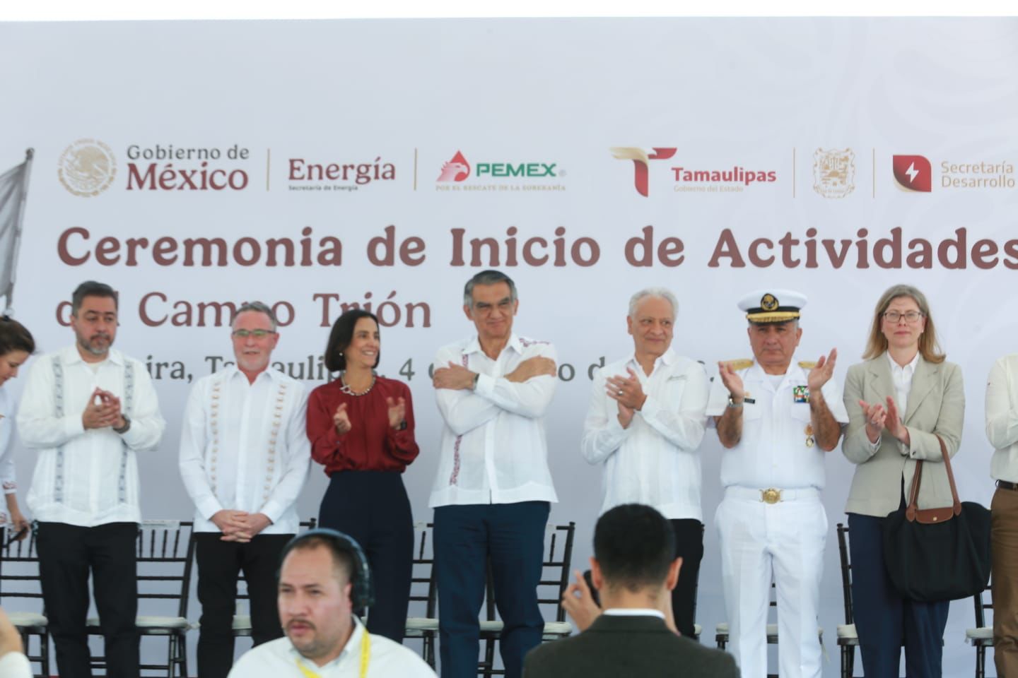 En el acto también estuvieron presentes Octavio Barrera Torres, director de Exploración y Producción de Pemex; Jesús Toledo Guzmán, subsecretario de Asuntos Marítimos y Portuarios; Vidal Llerenas Morales, subsecretario de Industria y Comercio de la Secretaría de Economía; Fidel Maldonado Herrera, titular de la ASIPONA Altamira; Walter Julián Ángel Jiménez, secretario de Desarrollo Energético de Tamaulipas, y Ninfa Cantú Deándar, secretaria de Economía.
