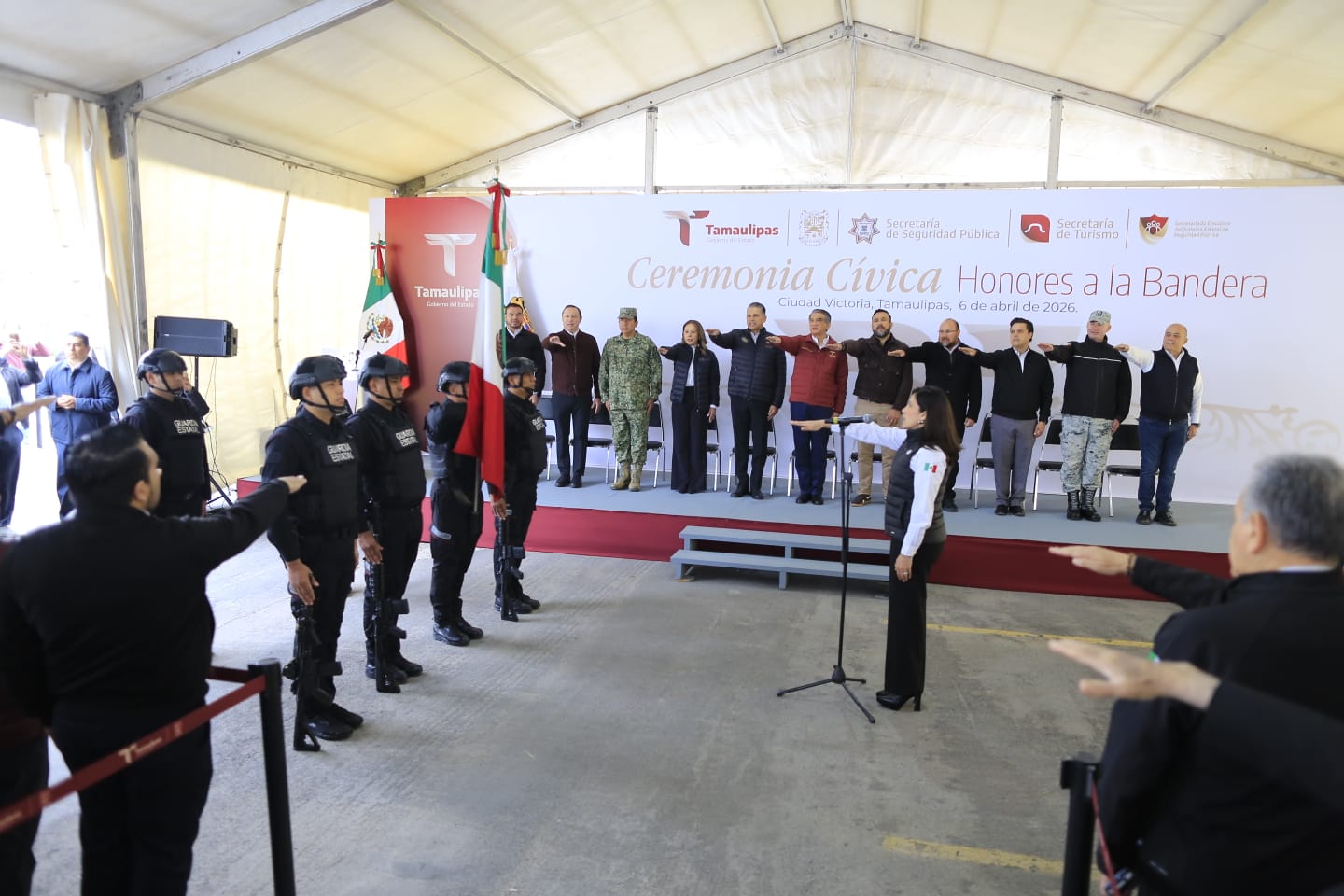 Acompañaron al gobernador en esta ceremonia: Tania Contreras López, presidenta del Supremo Tribunal de Justicia; Humberto Armando Prieto Herrera, presidente de la Junta de Gobierno del Congreso del Estado; Sergio Ojeda, presidente de la Mesa Directiva del Congreso; Héctor Villegas González, secretario general de Gobierno; Willy Zúñiga Castillo, secretario ejecutivo del Sistema Estatal de Seguridad Pública; Eduardo Govea Orozco, fiscal general de Justicia; Adolfo Amparán Hernández, coordinador estatal de la Guardia Nacional en Tamaulipas, y Gerardo Martínez Andrade, en representación de la 48 Zona Militar.