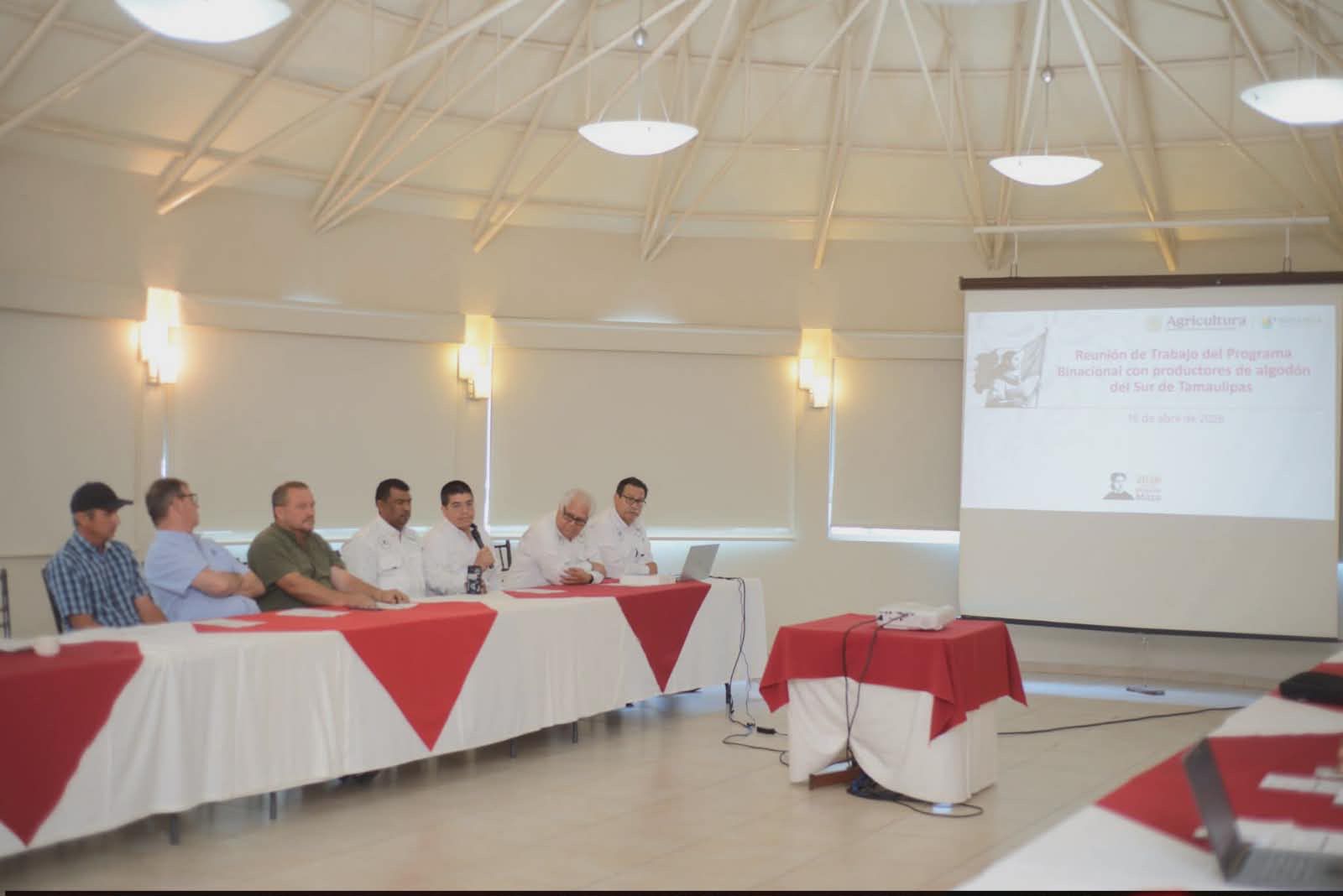 El subsecretario de Desarrollo Agrícola, Eliseo Camacho Nieto, asistió a una reunión de trabajo del Programa Binacional con Productores de Algodón de Tamaulipas, un espacio de coordinación estratégica orientado a atender los principales retos fitosanitarios del sector.