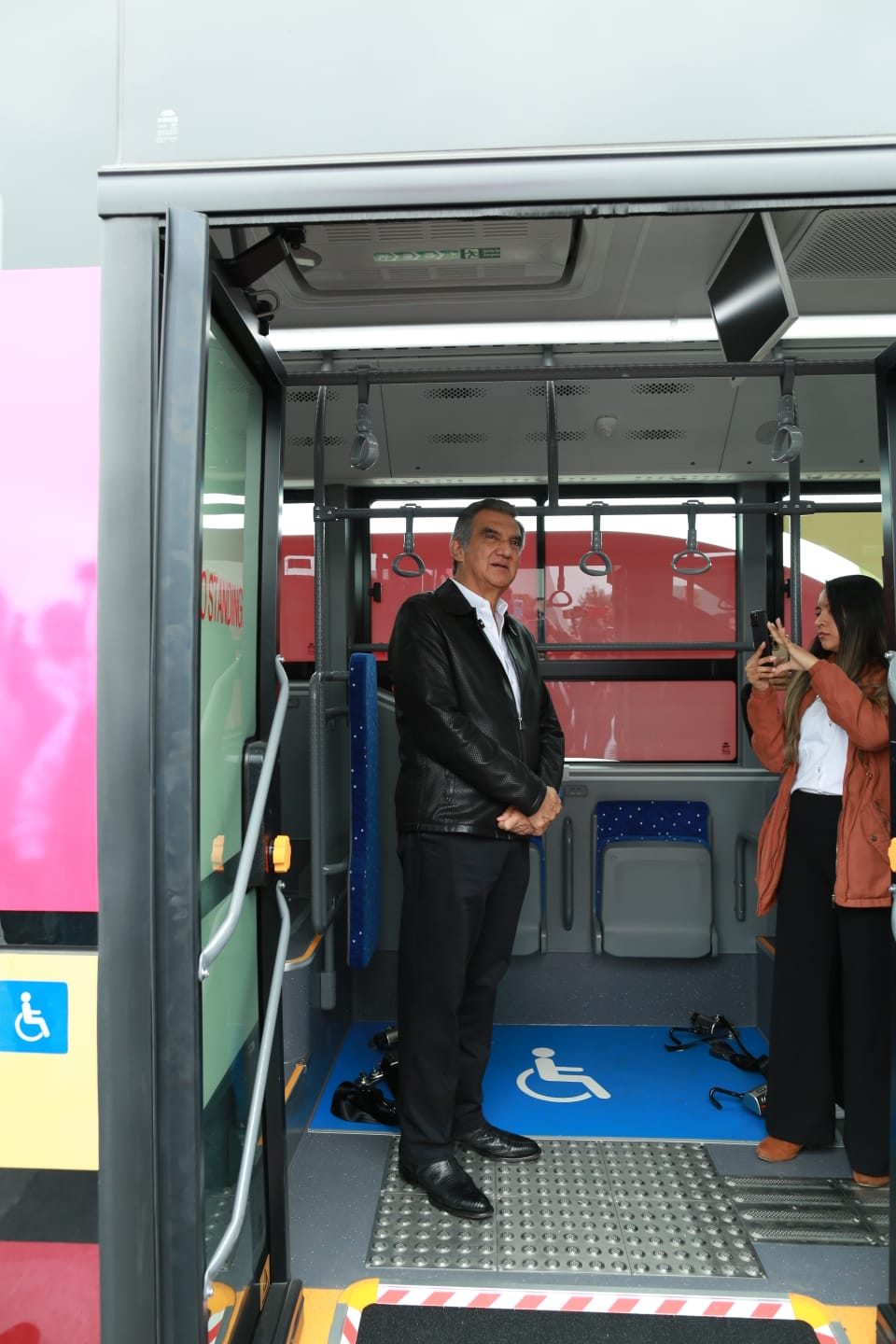 Luego de la ceremonia cívica de honores, en el Polyforum de esta capital, el gobernador, acompañado por el secretario de Desarrollo Urbano y Medio Ambiente, Karl Heinz Becker, hizo un recorrido e ingresó a las unidades estacionadas frente al Águila monumental, en donde escuchó la explicación sobre el funcionamiento de los vehículos que permitirán avanzar hacia un modelo de movilidad más ordenado, humano y eficiente.
