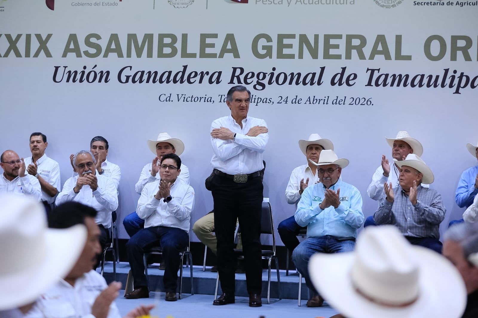 Al presidir la clausura de la LXXXIX Asamblea General Ordinaria de la Unión Ganadera Regional de Tamaulipas, acompañado por Francisco Javier Calderón Elizalde, director en jefe del SENASICA, y Homero García de la Llata, presidente de la Confederación Nacional de Organizaciones Ganaderas, el gobernador destacó que gracias al trabajo conjunto entre el Gobierno del Estado y el sector ganadero, se han adoptado medidas que incluso han sido reconocidas por autoridades norteamericanas para afrontar la contingencia del gusano barrenador del ganado.
