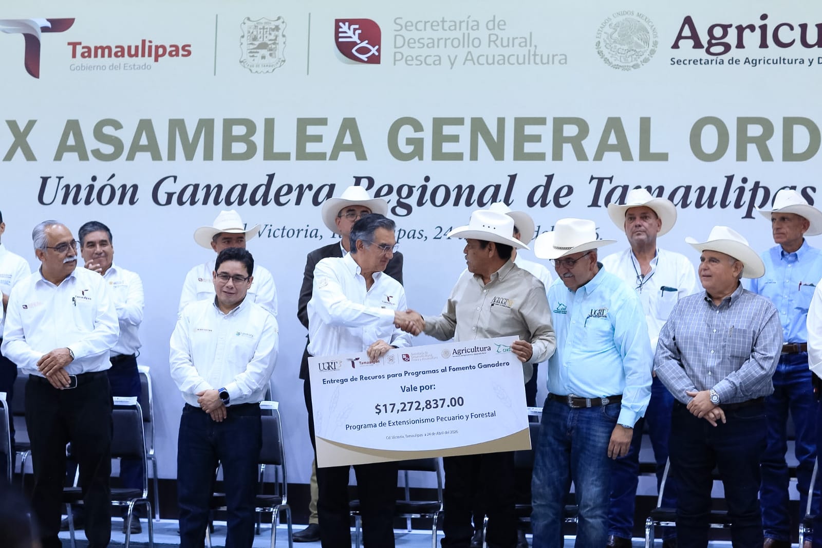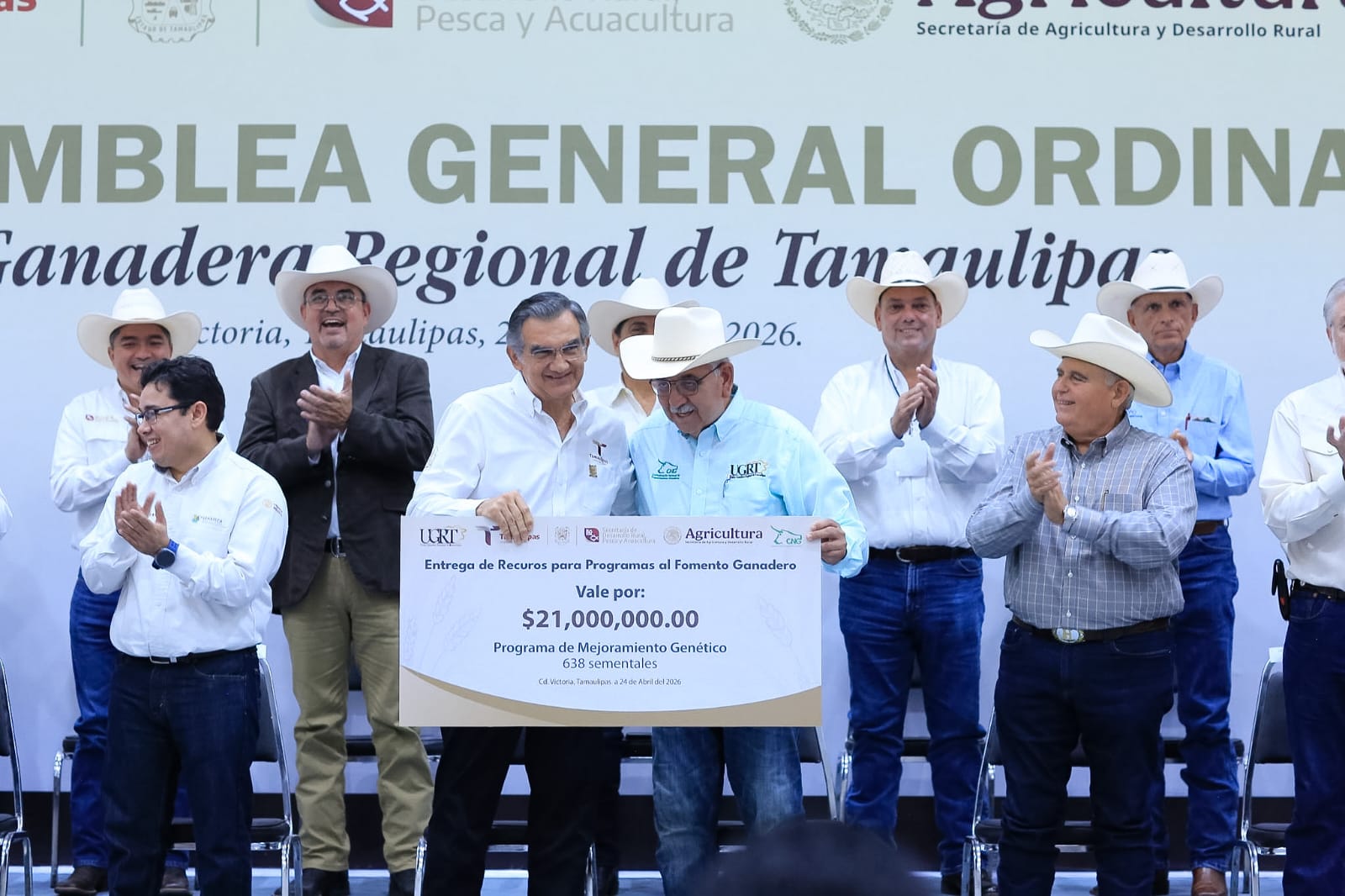 El gobernador Américo Villarreal Anaya refrendó todo su respaldo al sector ganadero, a fin de seguir impulsando esta vocación y tradición que da identidad a Tamaulipas, y entregó más de 80.7 millones de pesos como apoyo para diversos programas de sanidad animal, mejoramiento genético y extensionismo pecuario.
